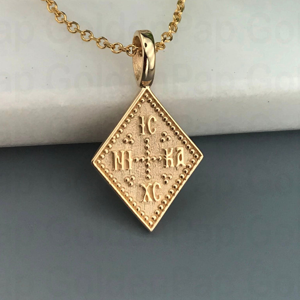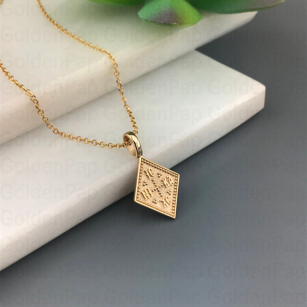 14k solid gold double sided pendant with Virgin Mary (RP46)