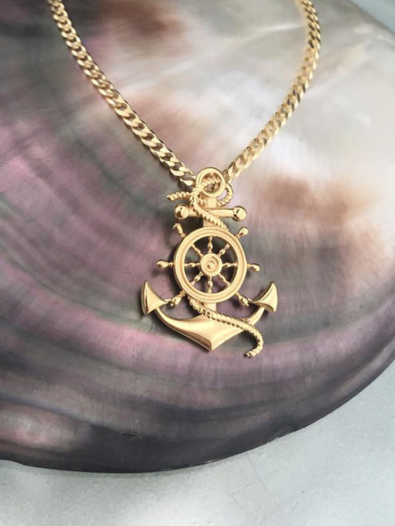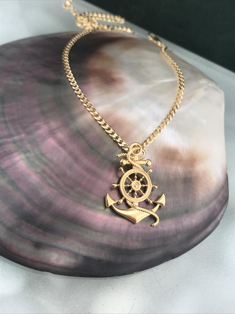 14k solid gold Αnchor & Nautical Steering Wheel(SKU: RP32)