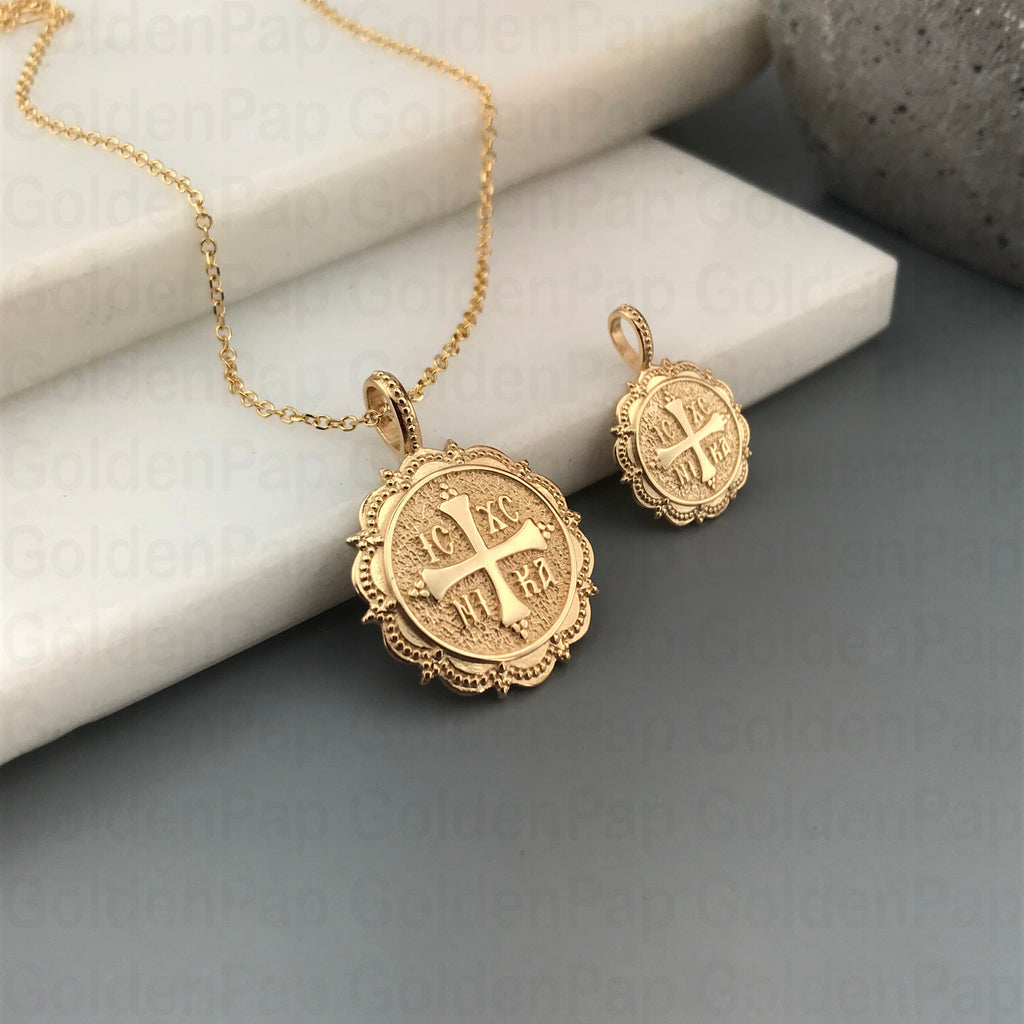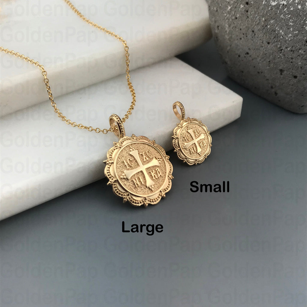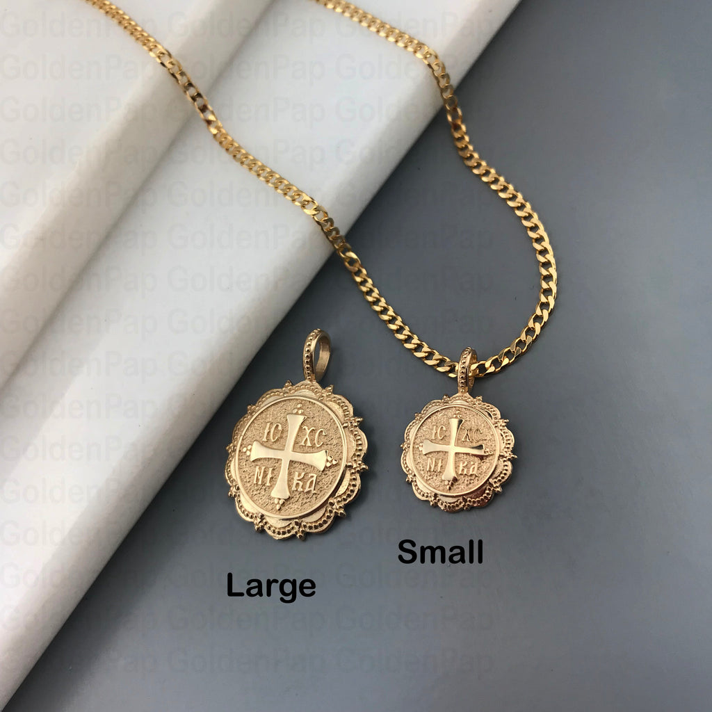 14k solid gold Pendant with cross and IC XC NIKA(SKU: RP5)