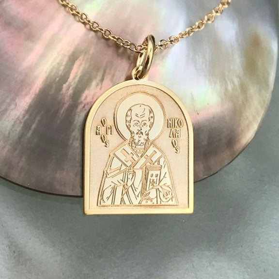 14k solid gold pendant with Saint Nicholas(SKU: RP28)