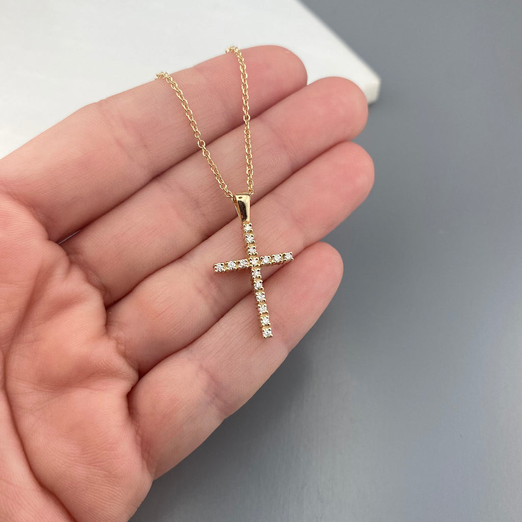 14k Gold cross with diamonds (SKU: 14KD10)