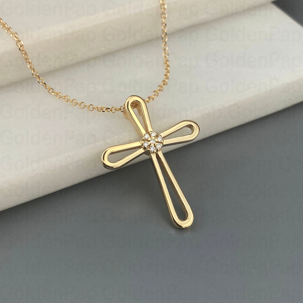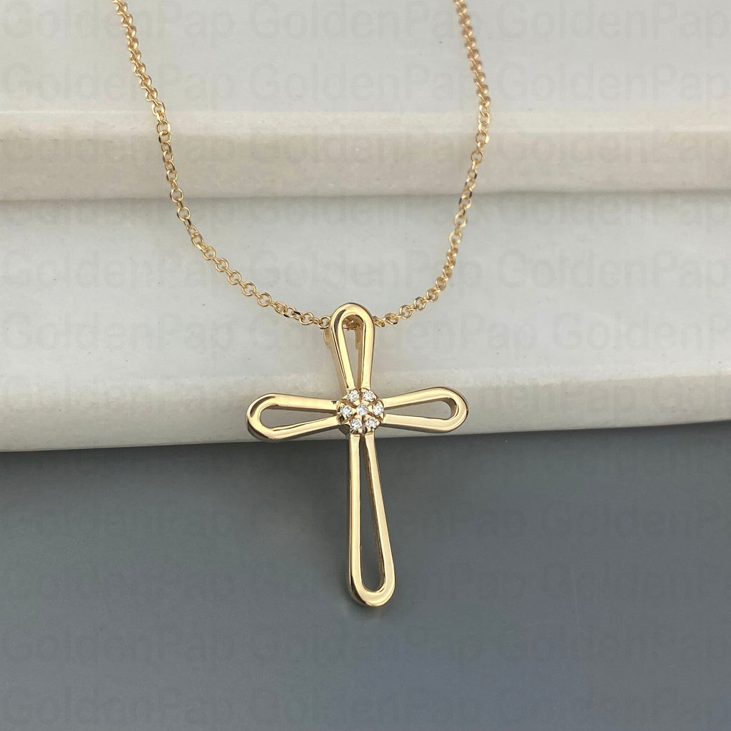 14k Gold cross with diamonds (SKU: 14KD28)