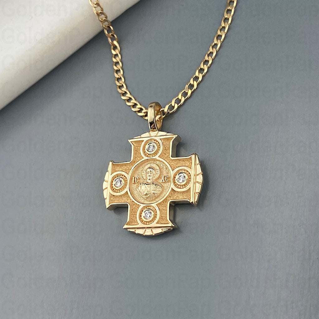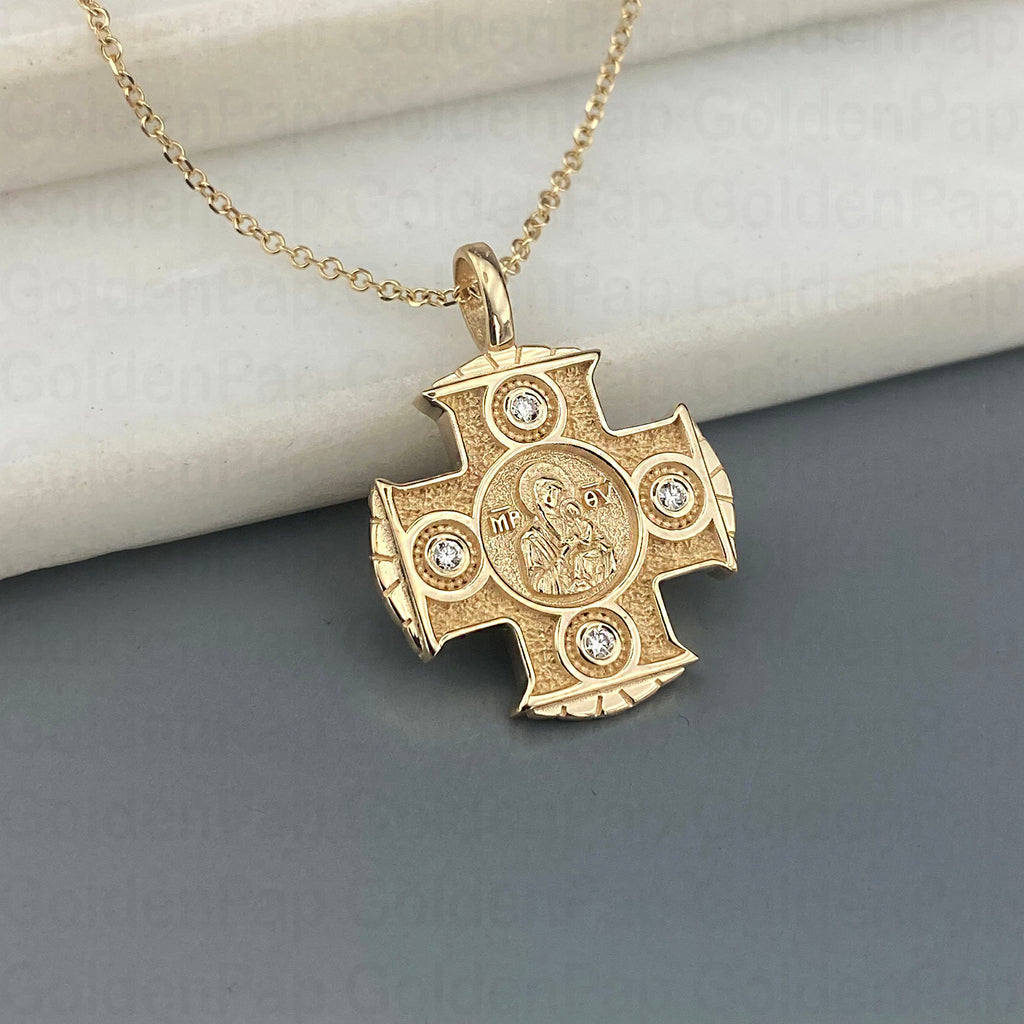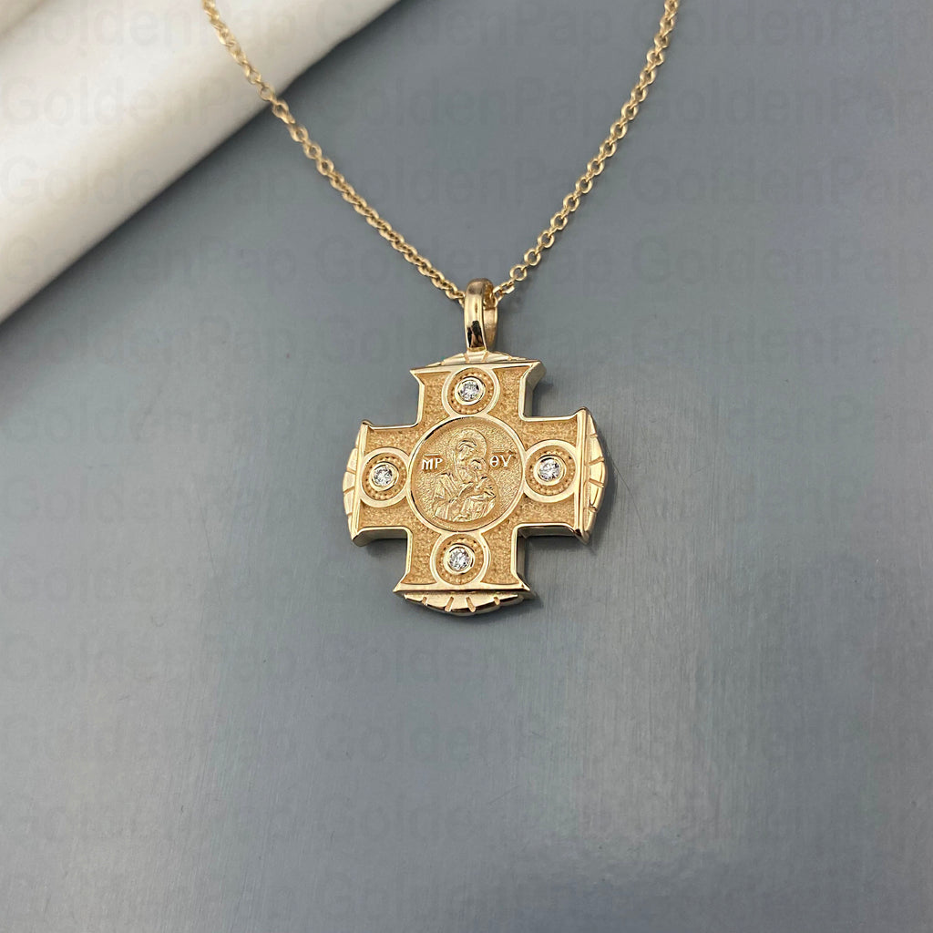 14k solid gold double sided cross with diamonds (sku: crtr66)