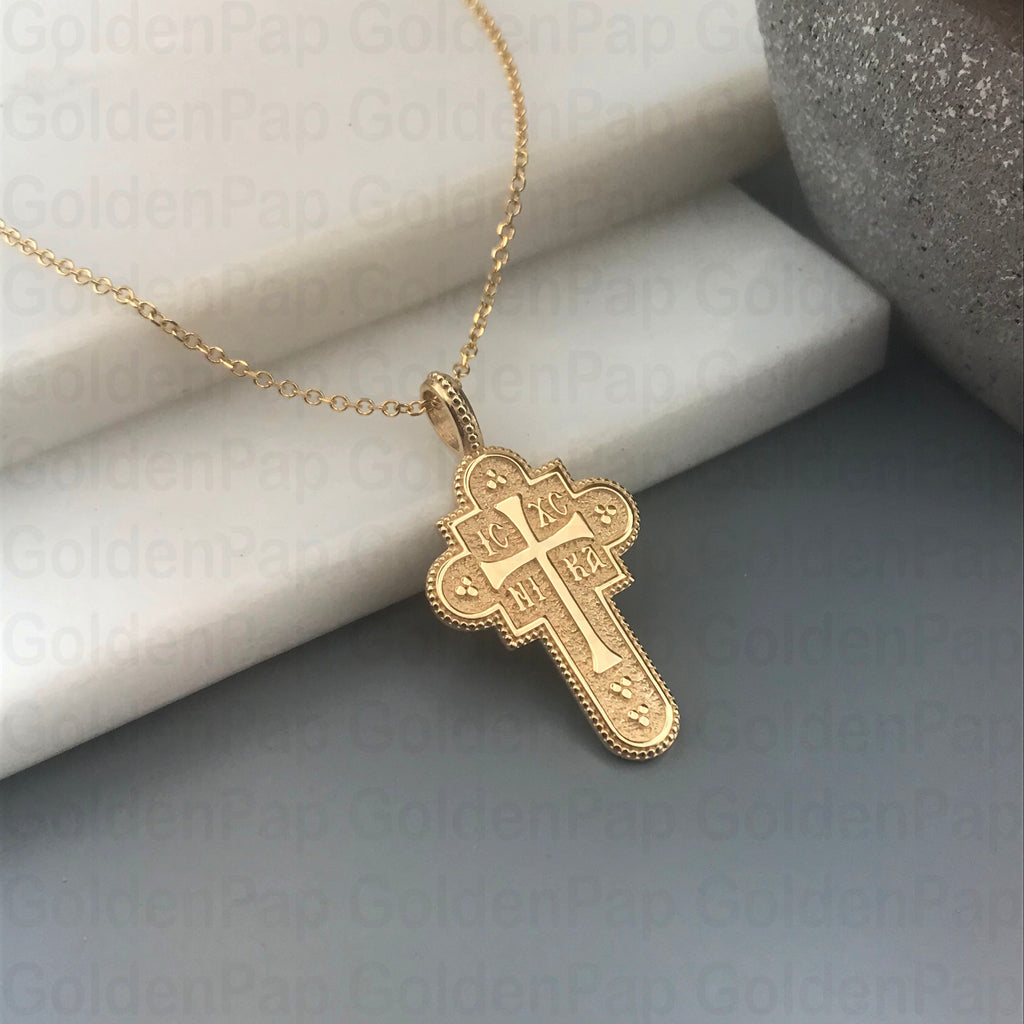 14k Solid gold cross with IC XC NIKA (sku: CRTR8)