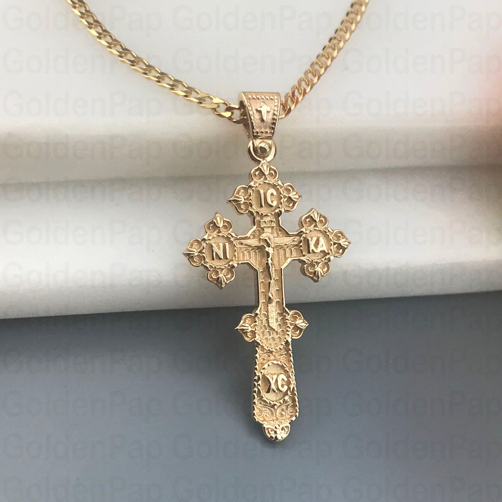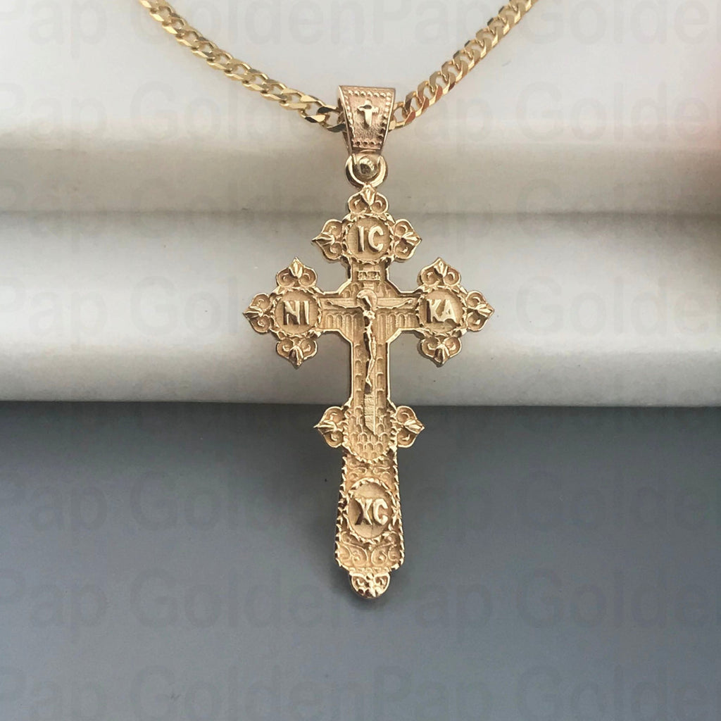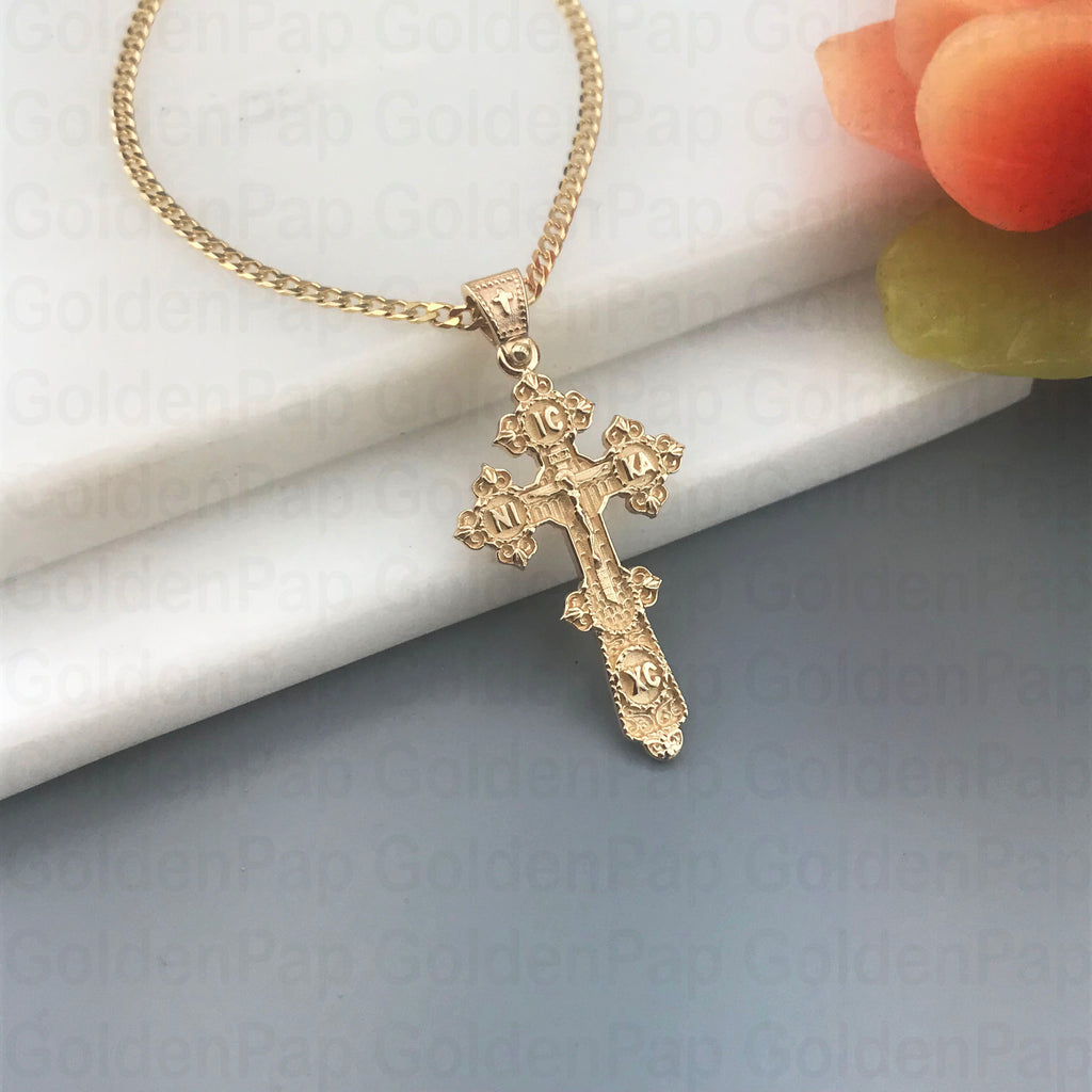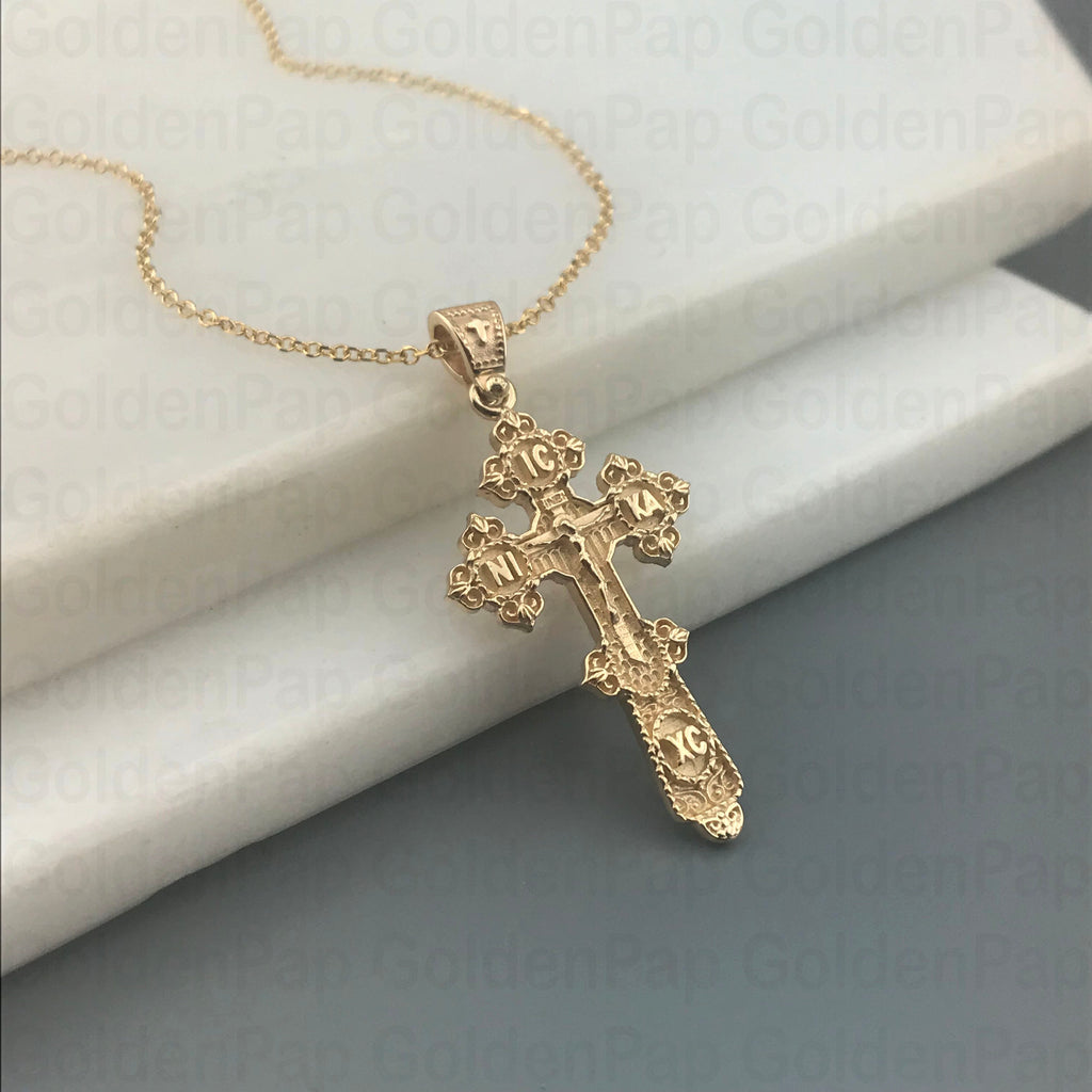 14k solid gold cross with Jesus Christ (sku: CRTR12)