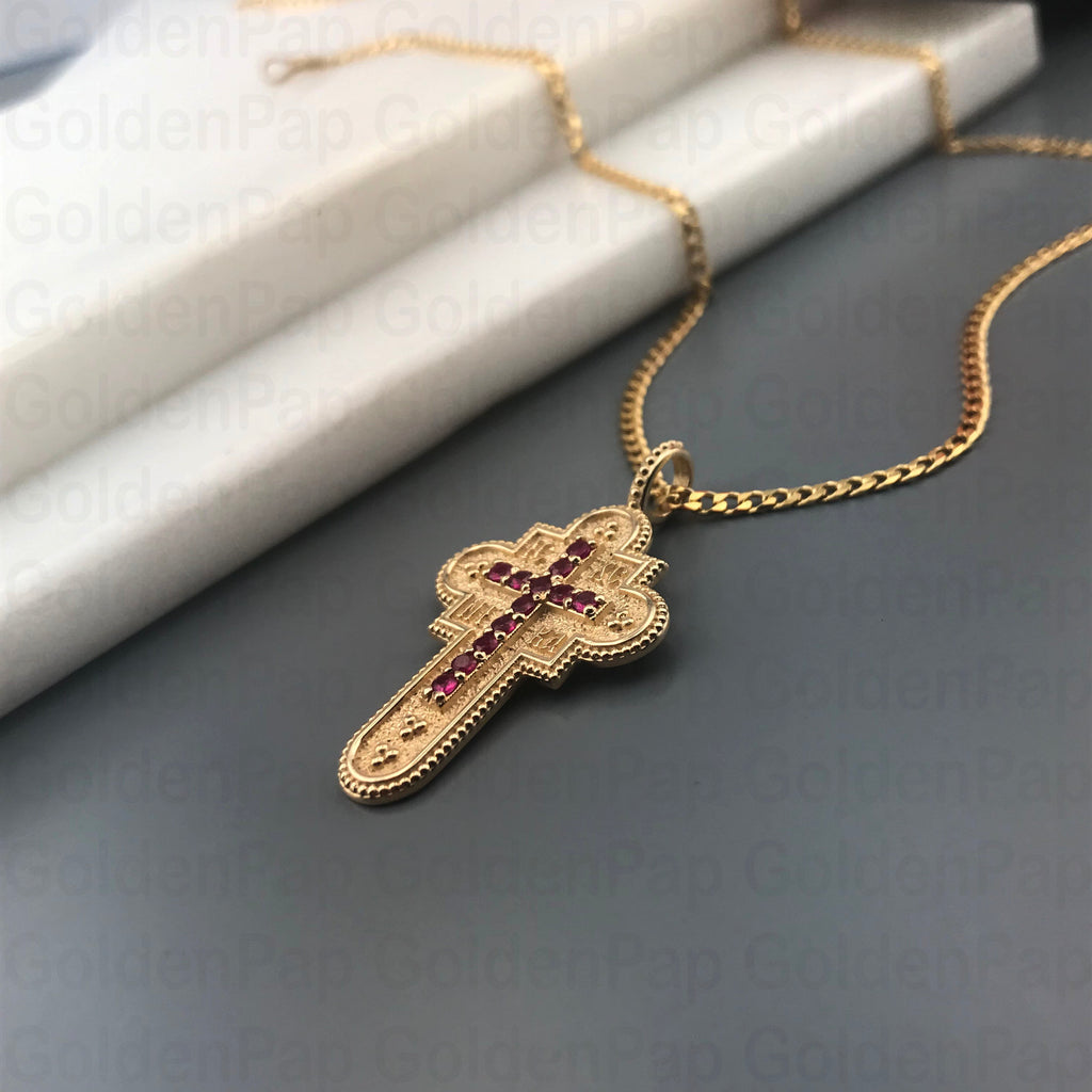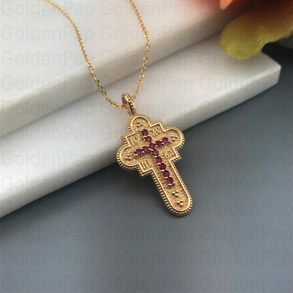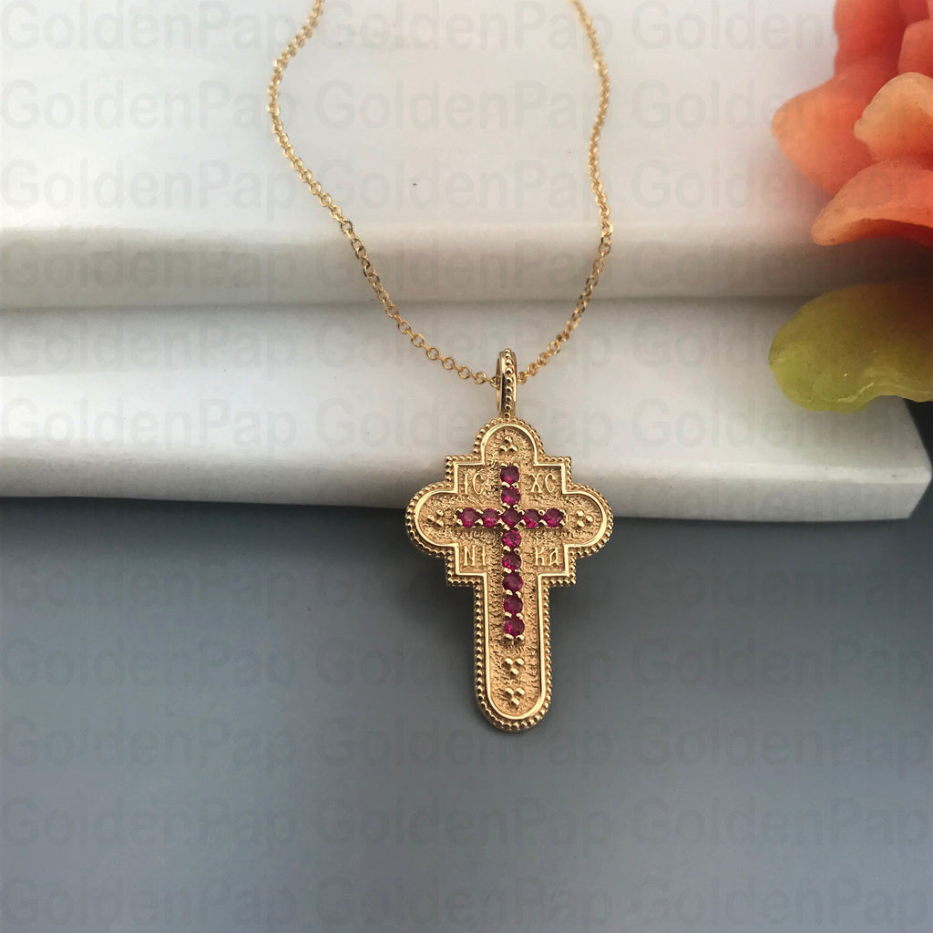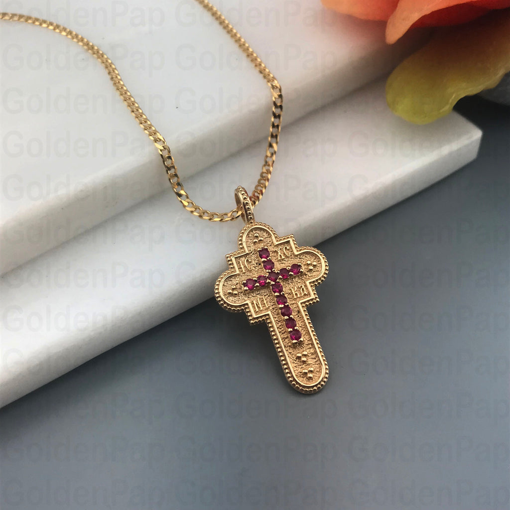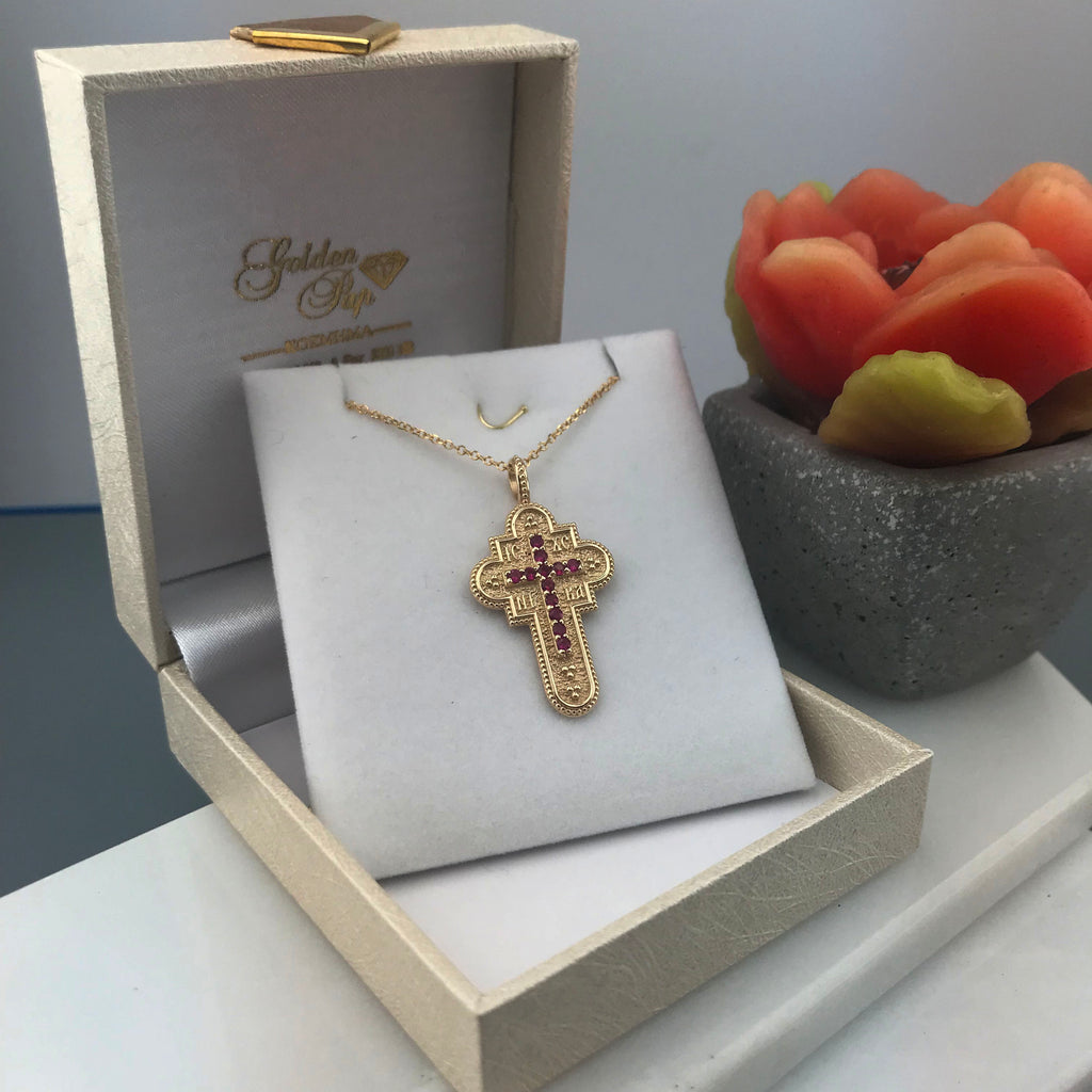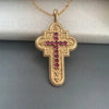 14k Solid gold cross with natural rubies (sku: CRTR28)