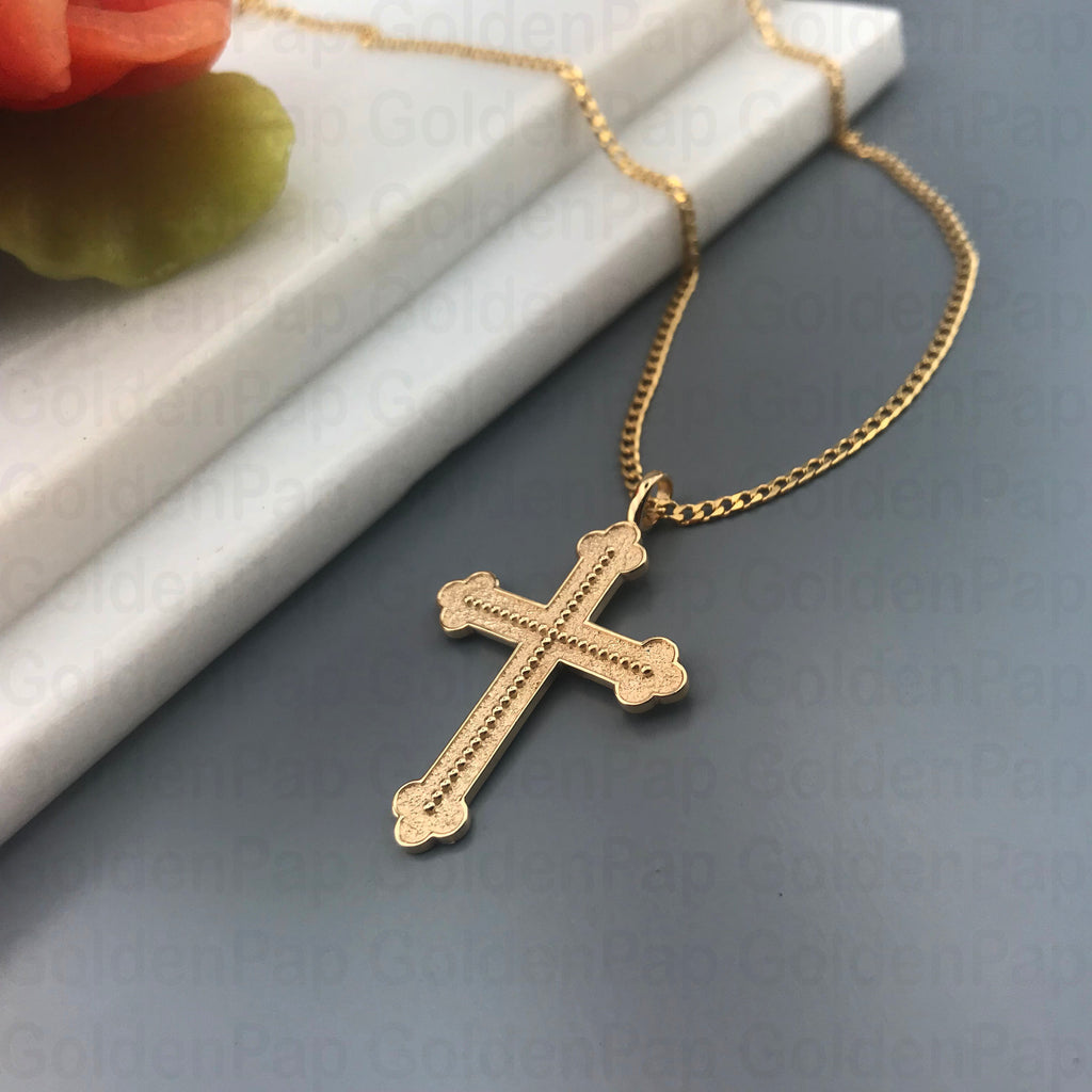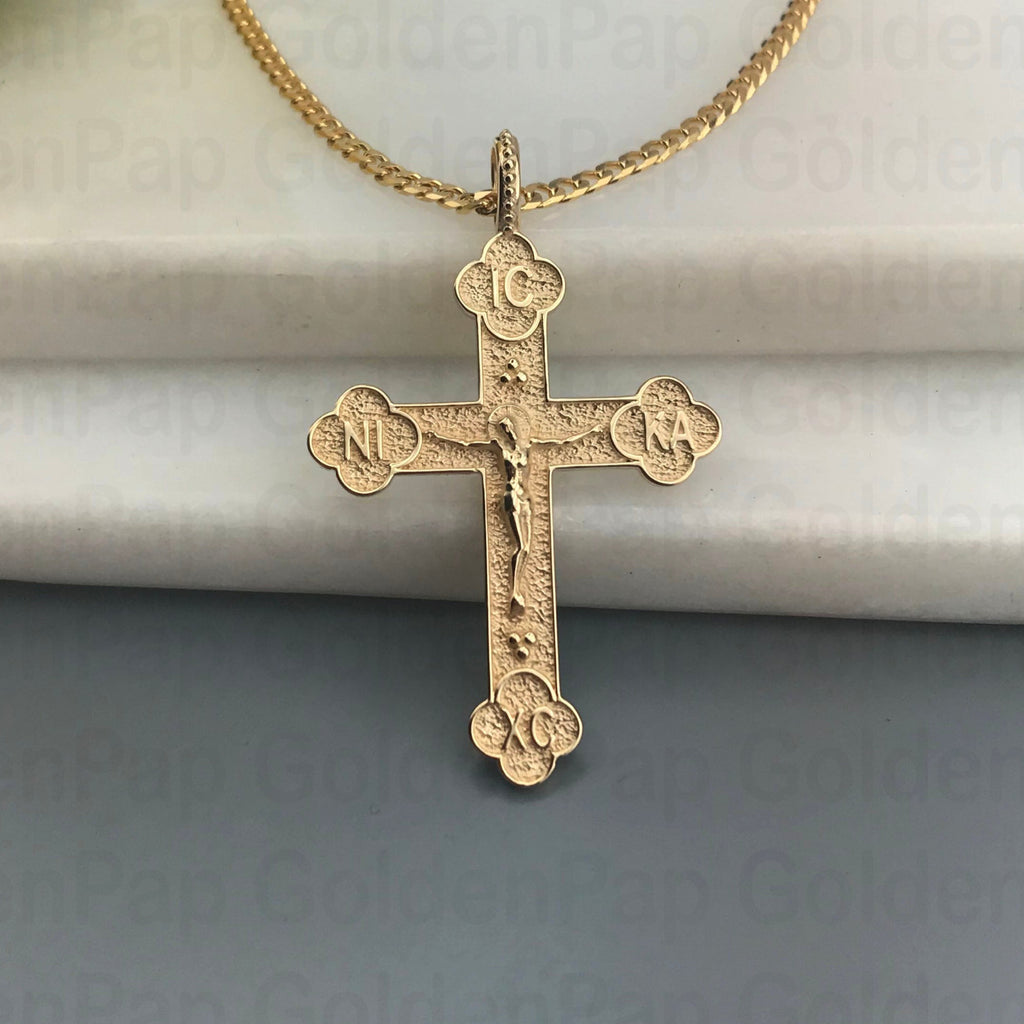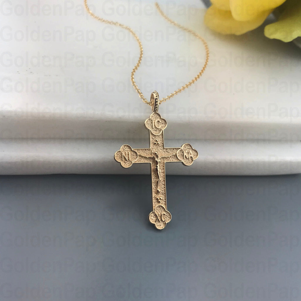 14k Solid gold cross with Jesus Christ, double sided cross, Extra Large size (sku: CRTR15)