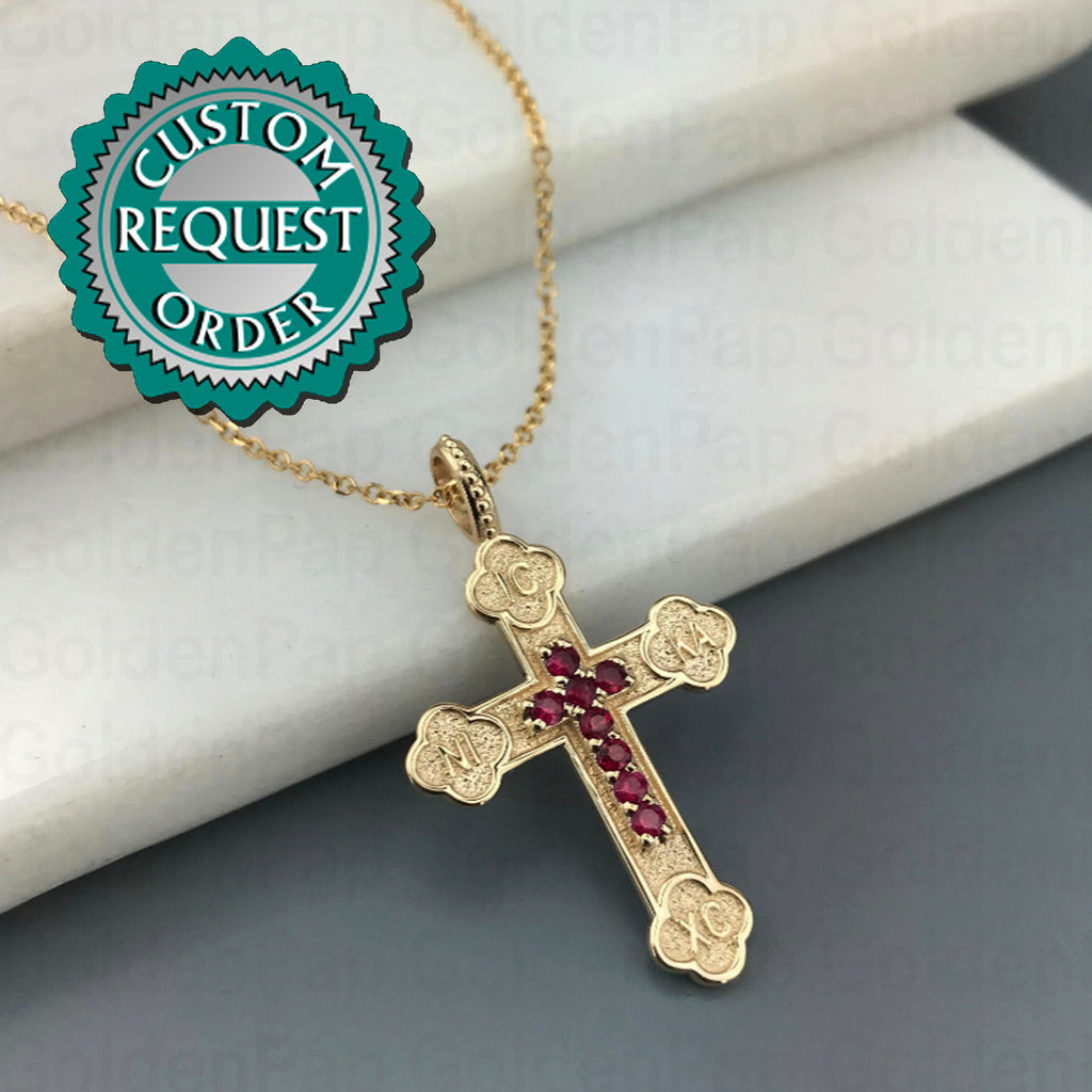 CUSTOM solid gold cross with rubies (sku: crtr711)