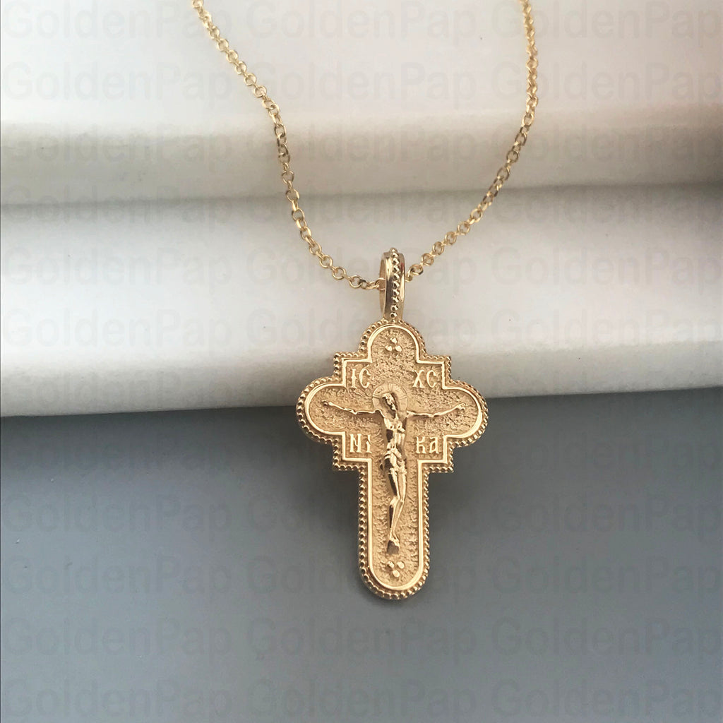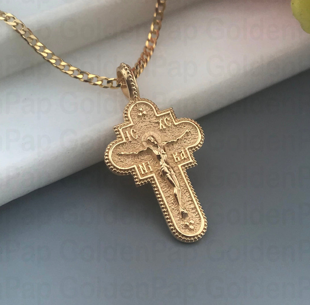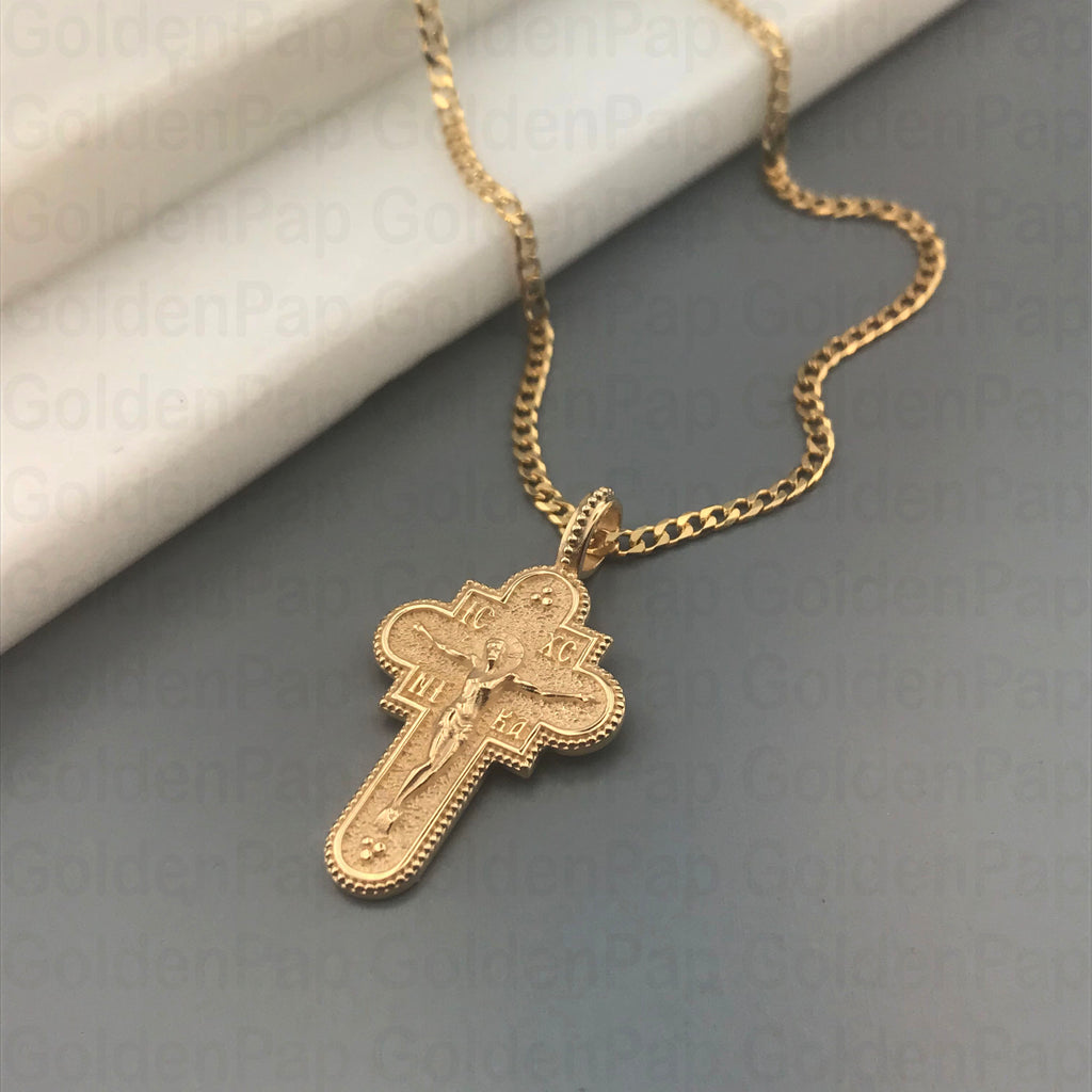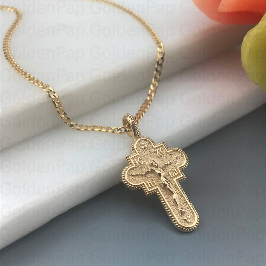 14k solid gold cross with Jesus Chris (sku: CRTR10)