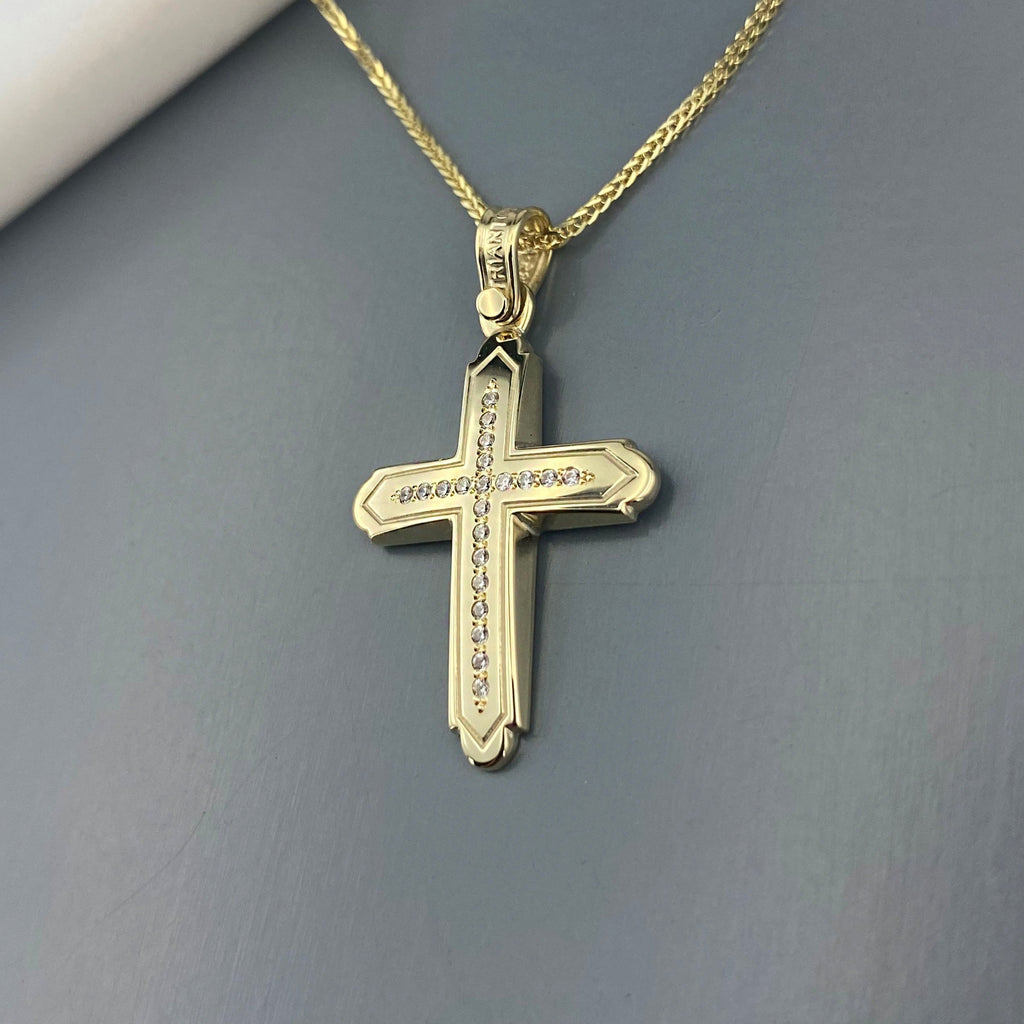 14k Gold cross with zirgons (SKU: 14KZ12)