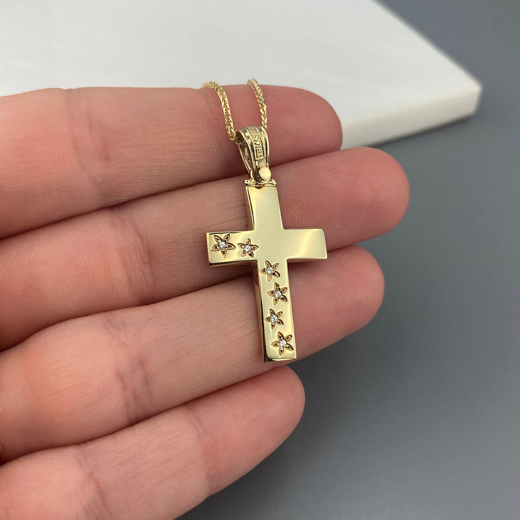 14k Gold cross with zirgons (SKU: 14KZ14)