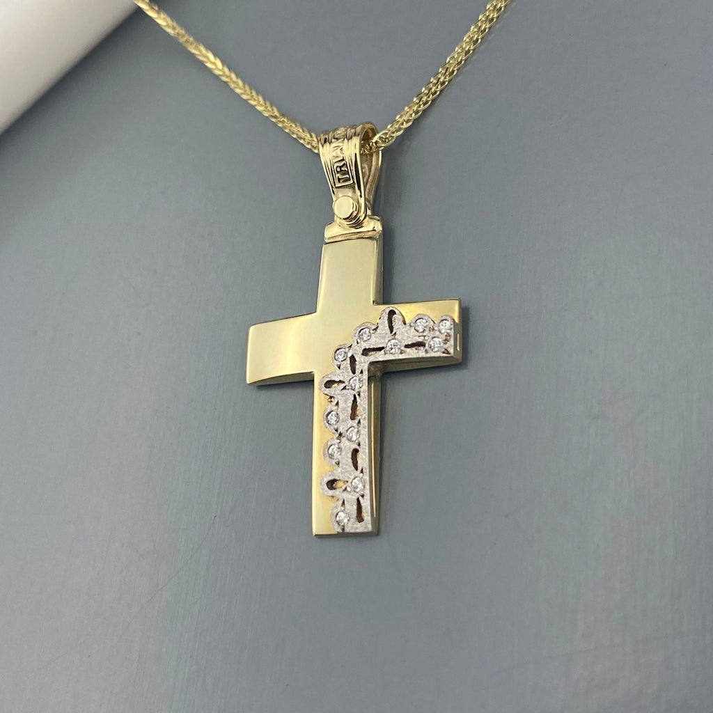 14k Gold cross with zirgons (SKU: 14KZ16)