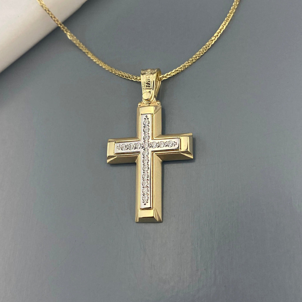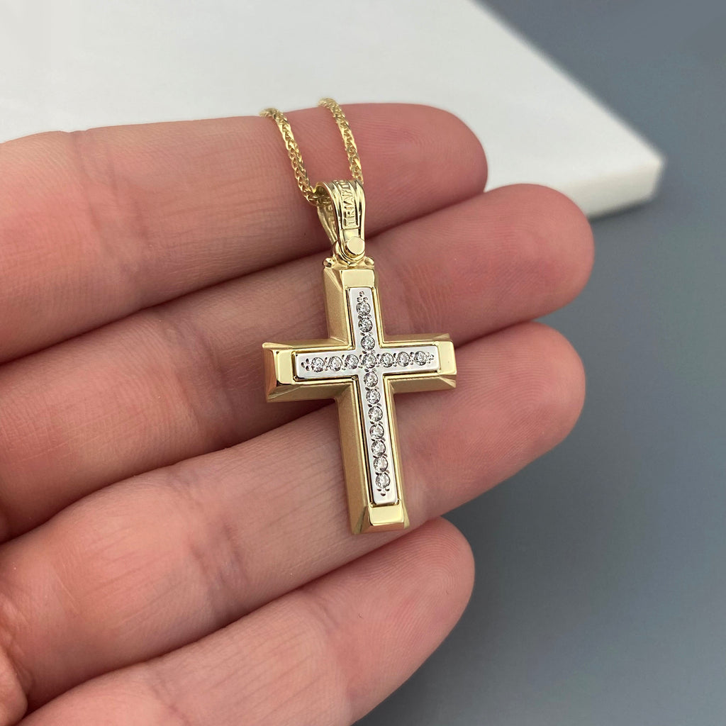 14k Gold cross with zirgons (SKU: 14KZ17)