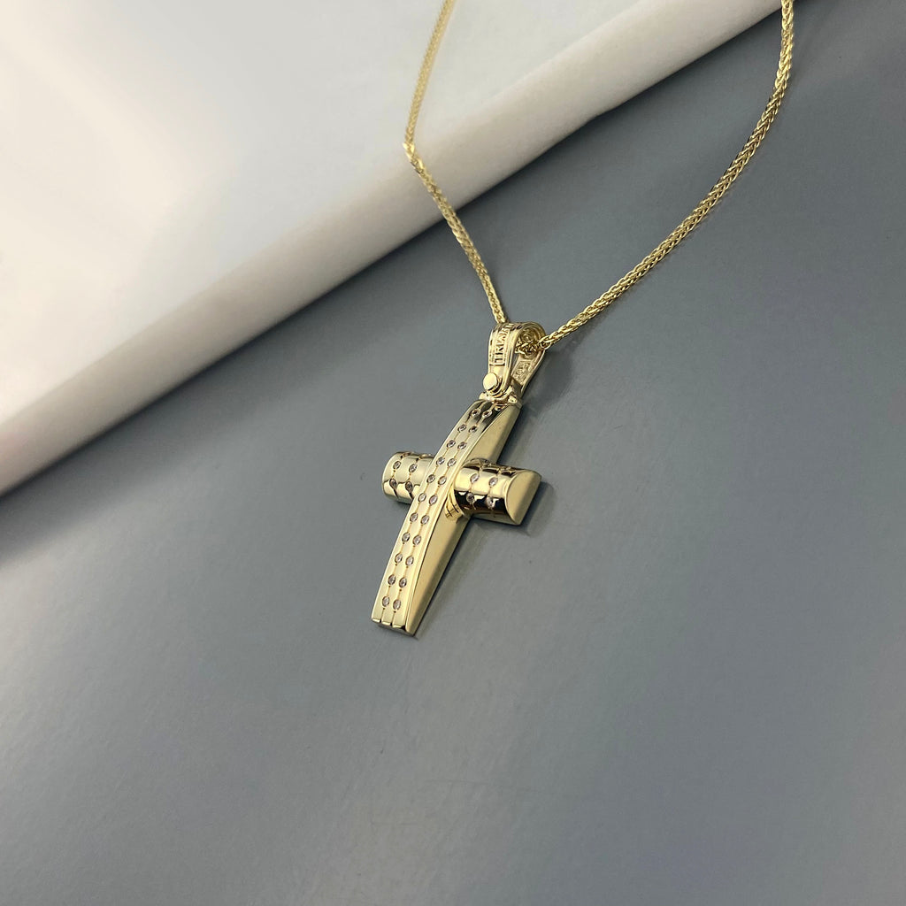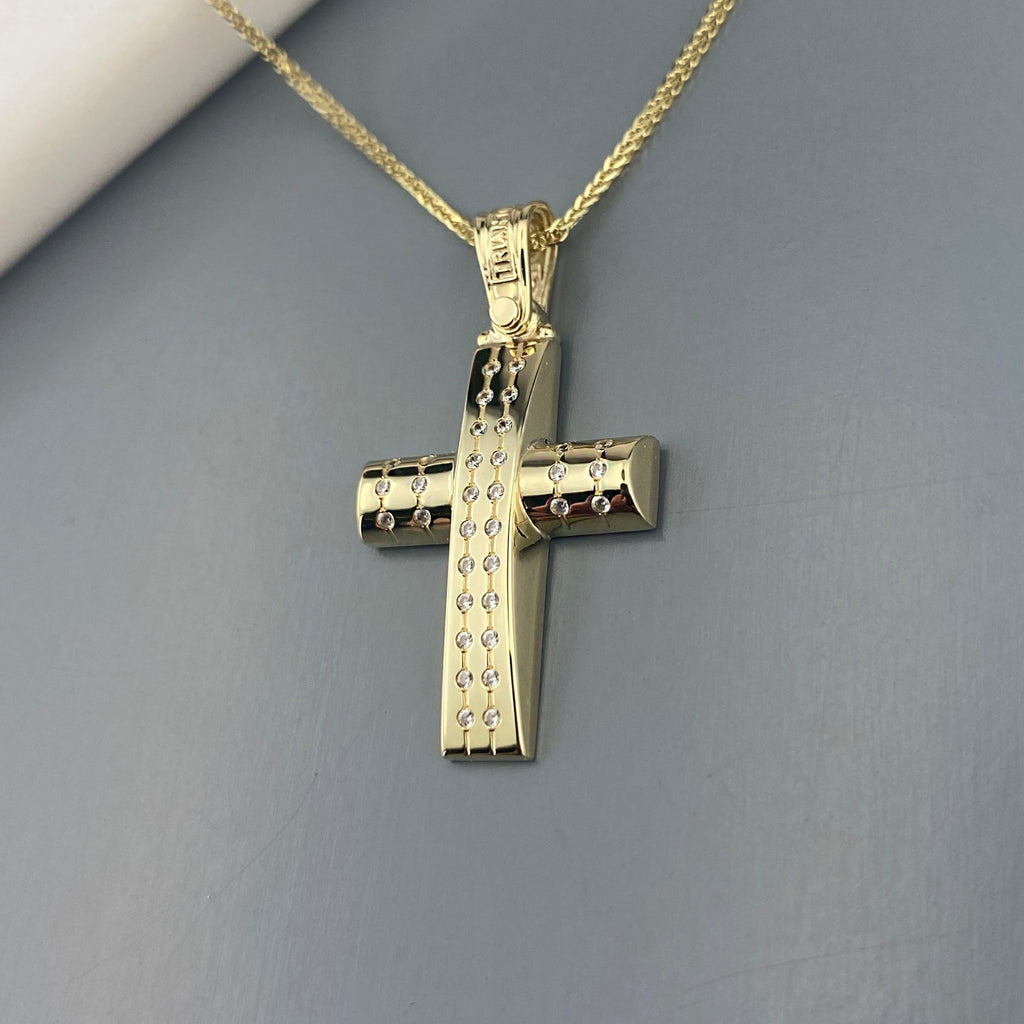 14k Gold cross with zirgons (SKU: 14KZ20)