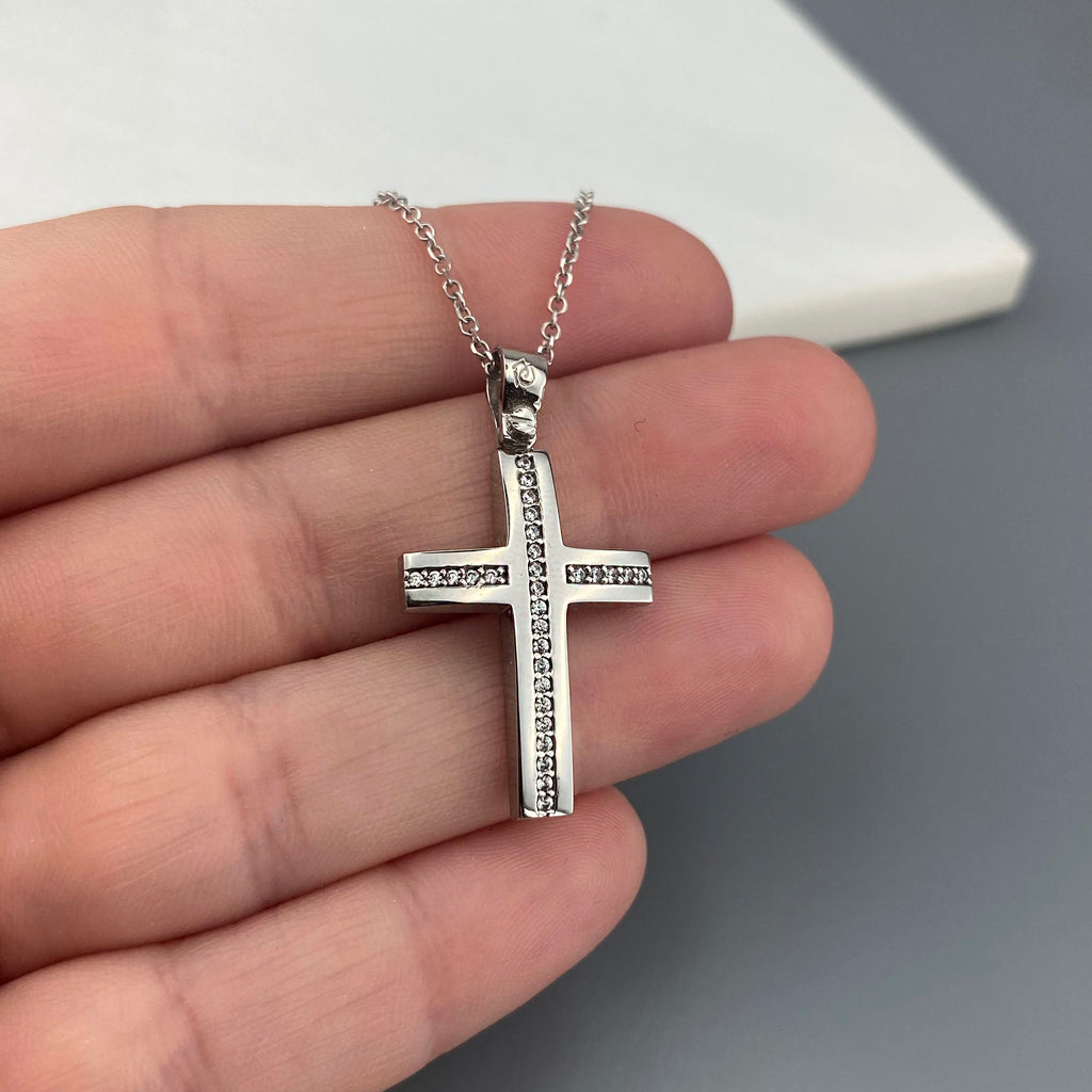 14k Gold cross with zirgons (SKU: 14KZ21)