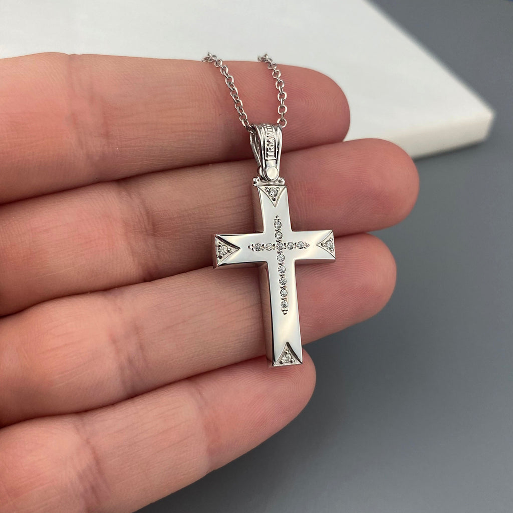 14k Gold cross with zirgons (SKU: 14KZ29)
