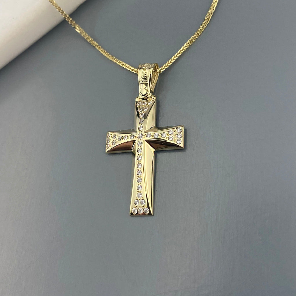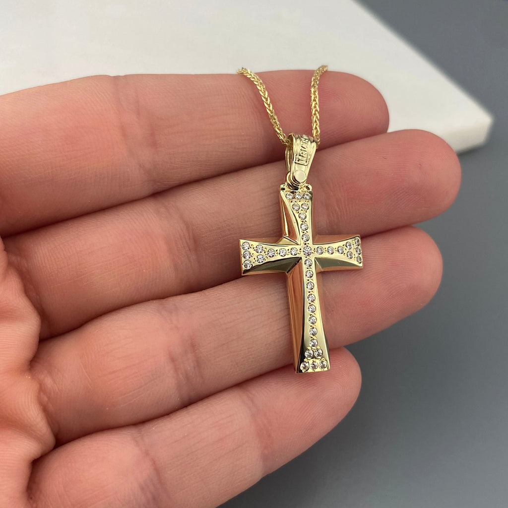14k Gold cross with zirgons (SKU: 14KZ33)