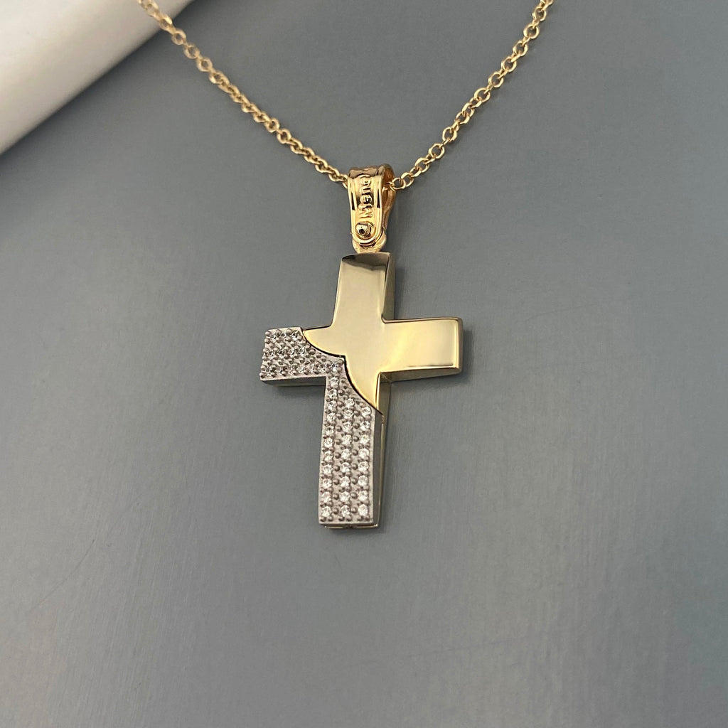 14k Gold cross with zirgons (SKU: 14KZ34)