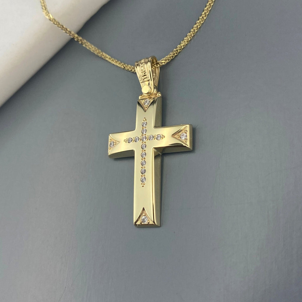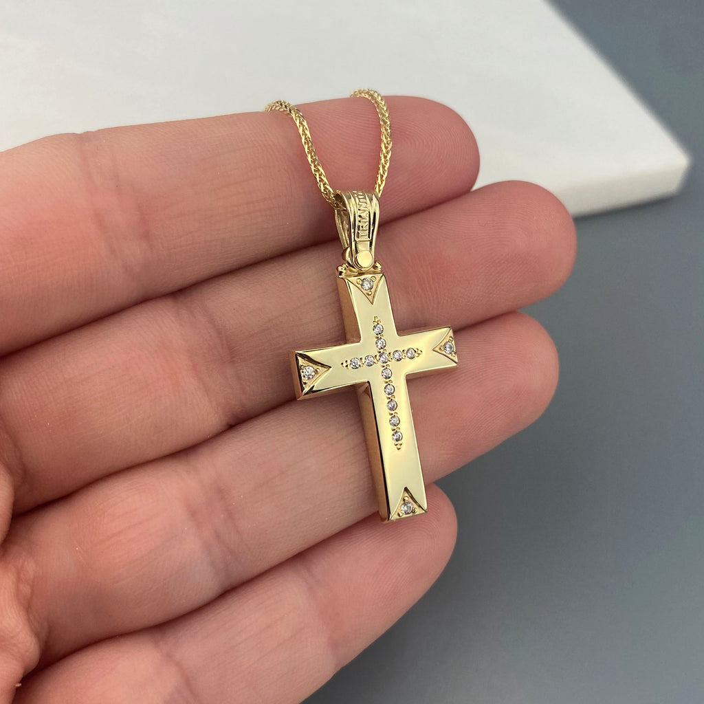 14k Gold cross with zirgons (SKU: 14KZ37)