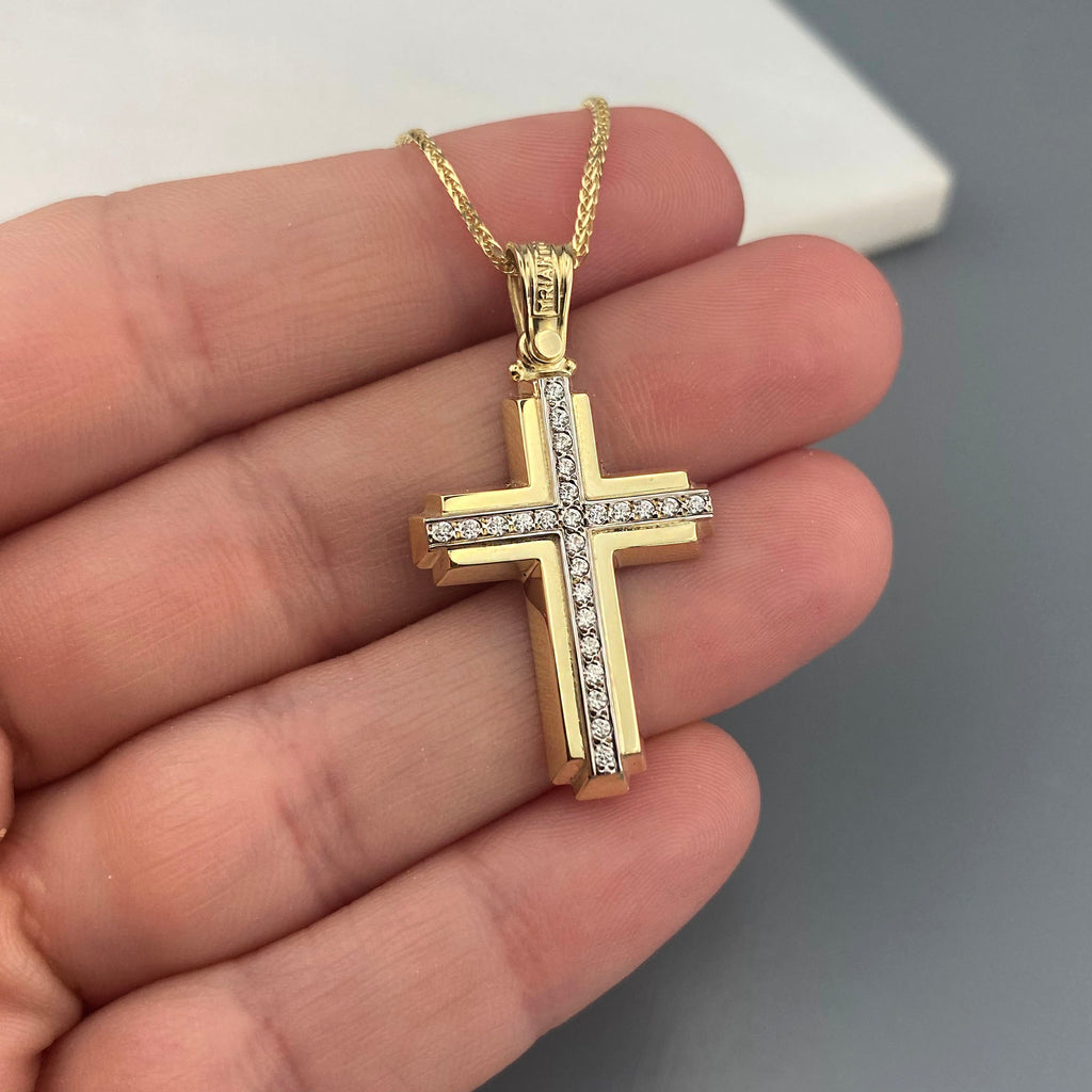 14k Gold cross with zirgons (SKU: 14KZ39)