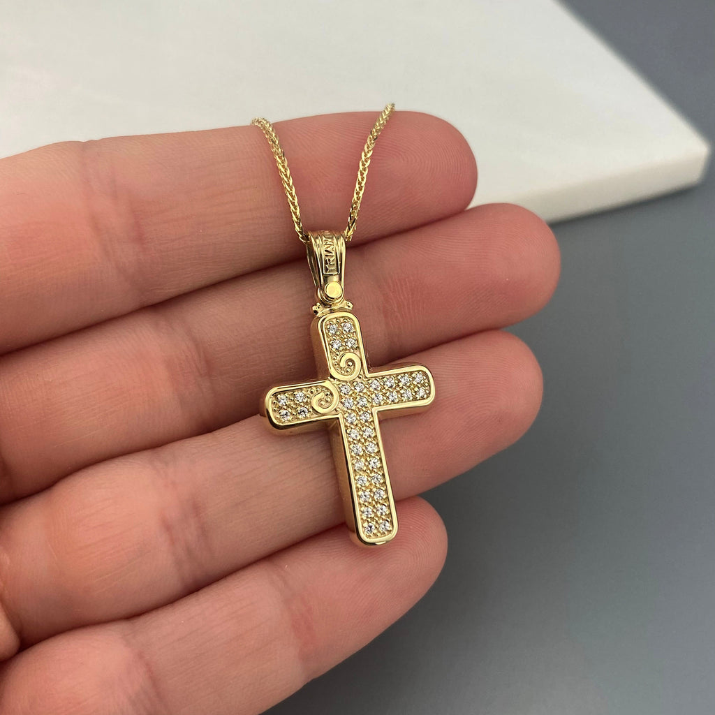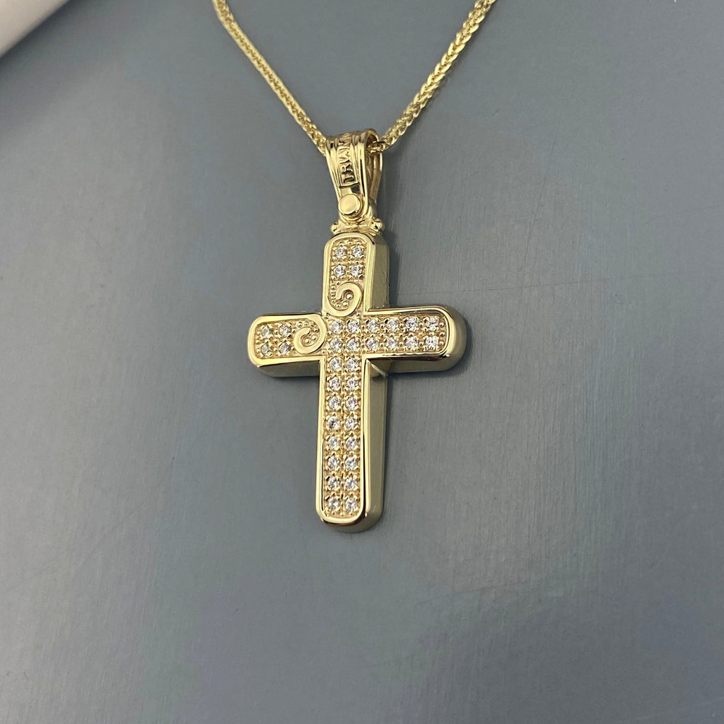 14k Gold cross with zirgons (SKU: 14KZ42)