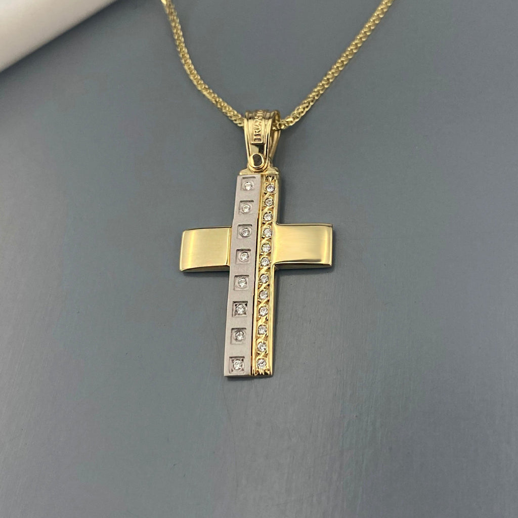 14k Gold cross with zirgons (SKU: 14KZ43)