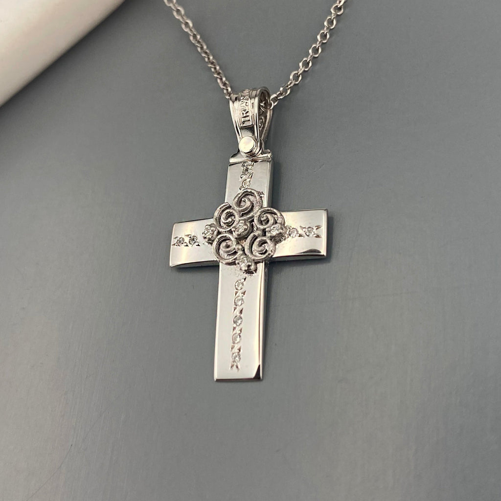 14k Gold cross with zirgons (SKU: 14KZ50)