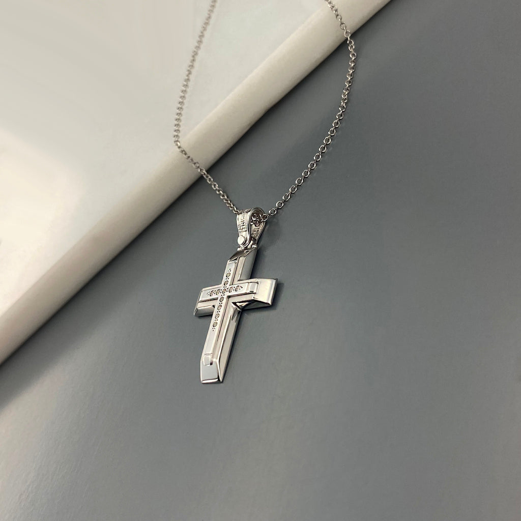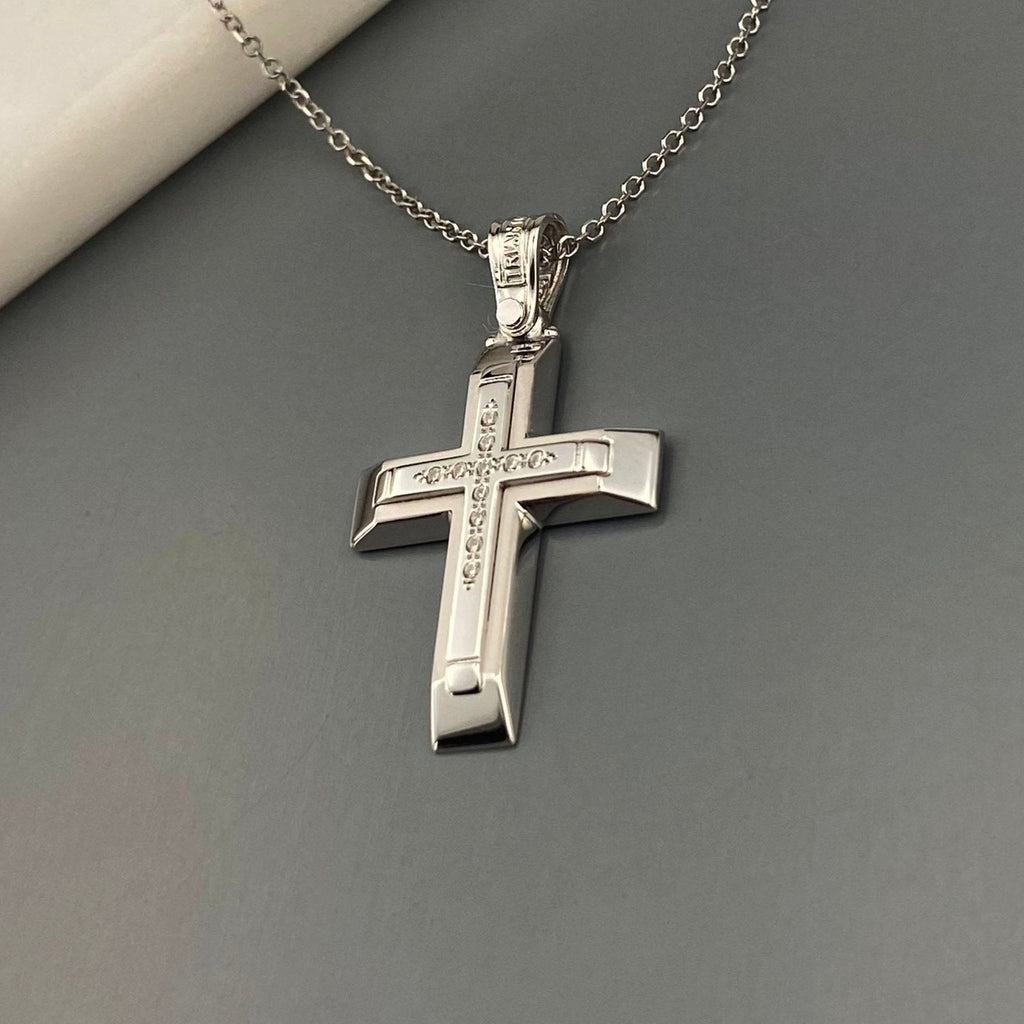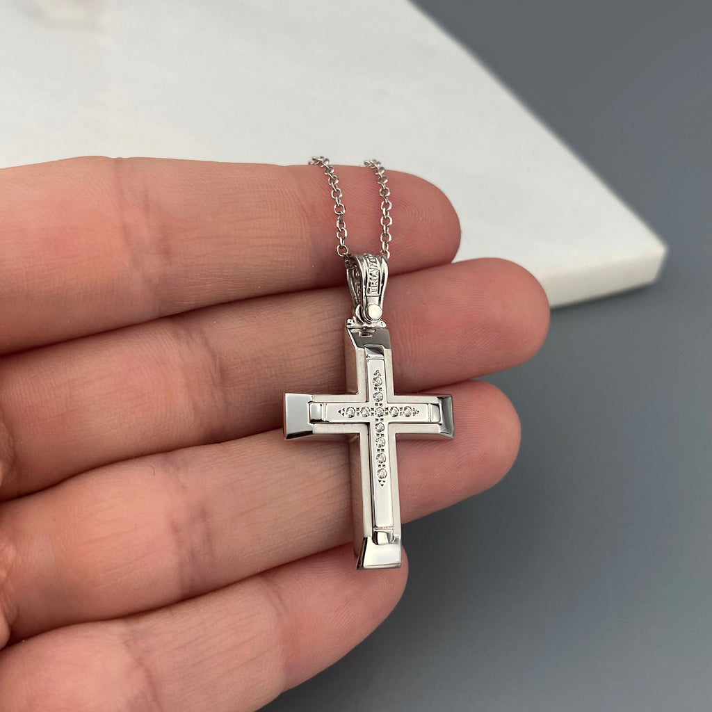 14k Gold cross with zirgons (SKU: 14KZ54)