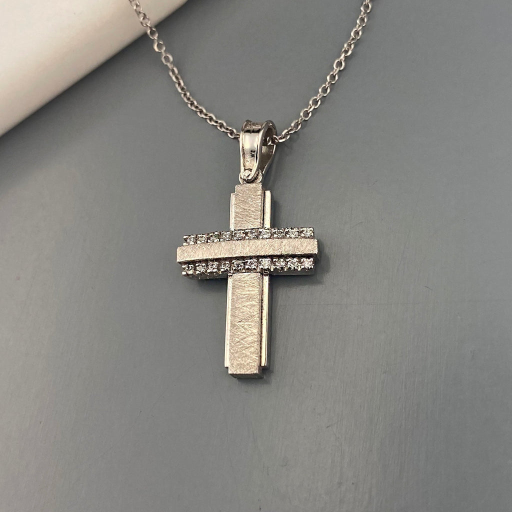 14k Gold cross with zirgons (SKU: 14KZ8)