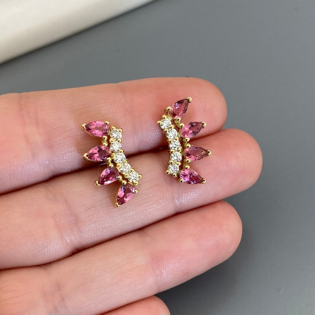 18k gold earrings with diamonds and tourmalines (SKU: ED1)