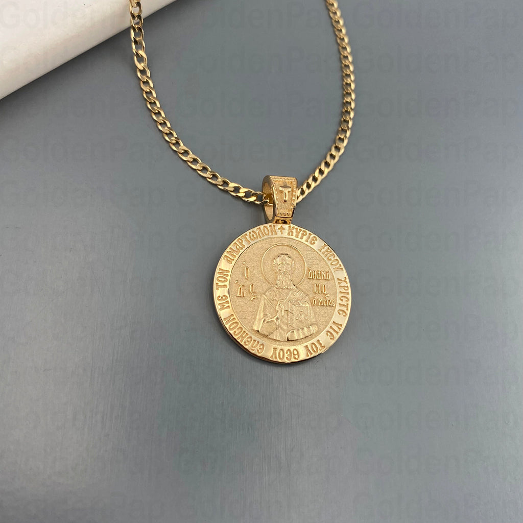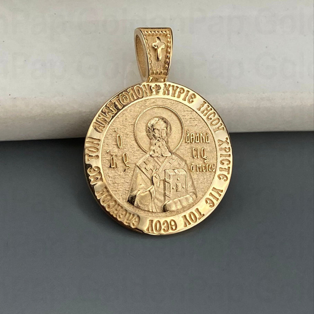 14k solid gold Saint Athanasius double sided pendant (RP164)