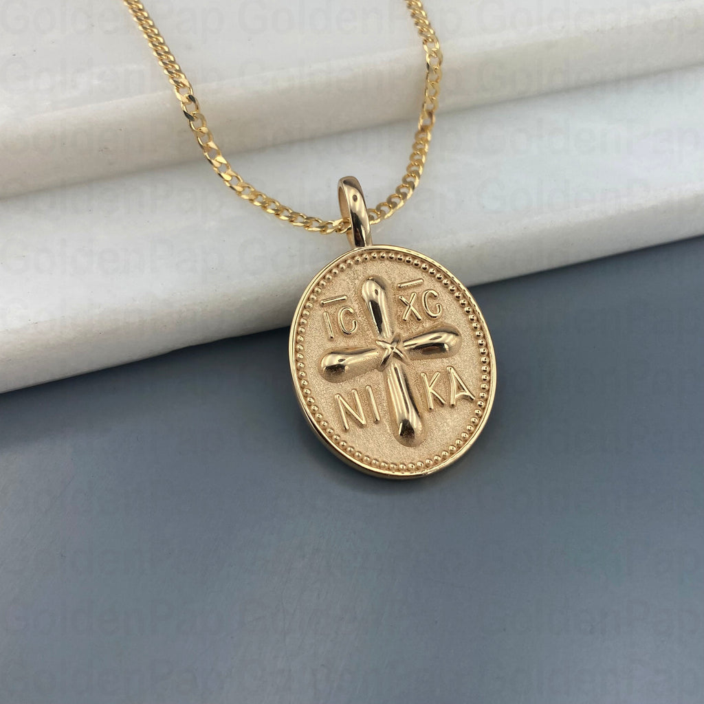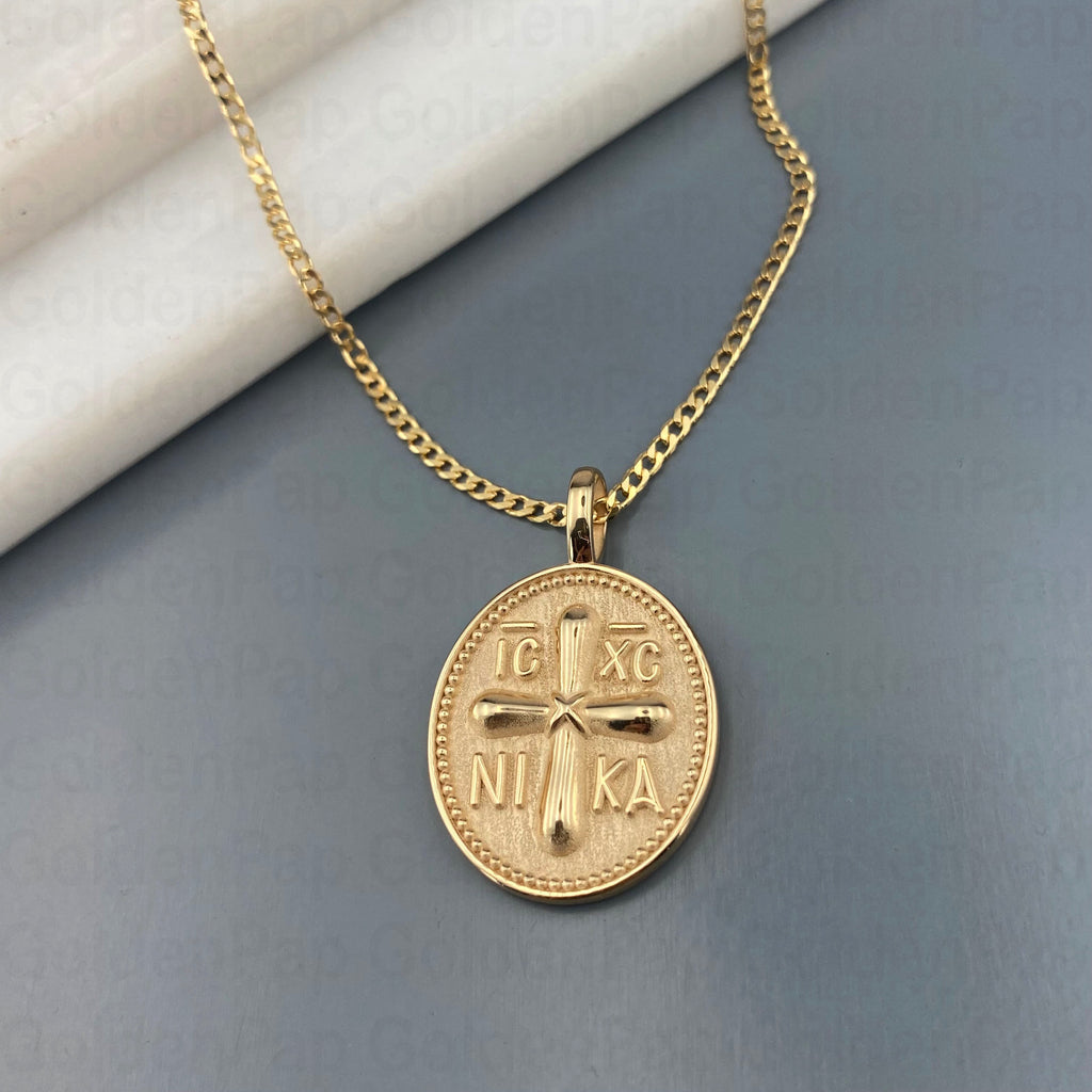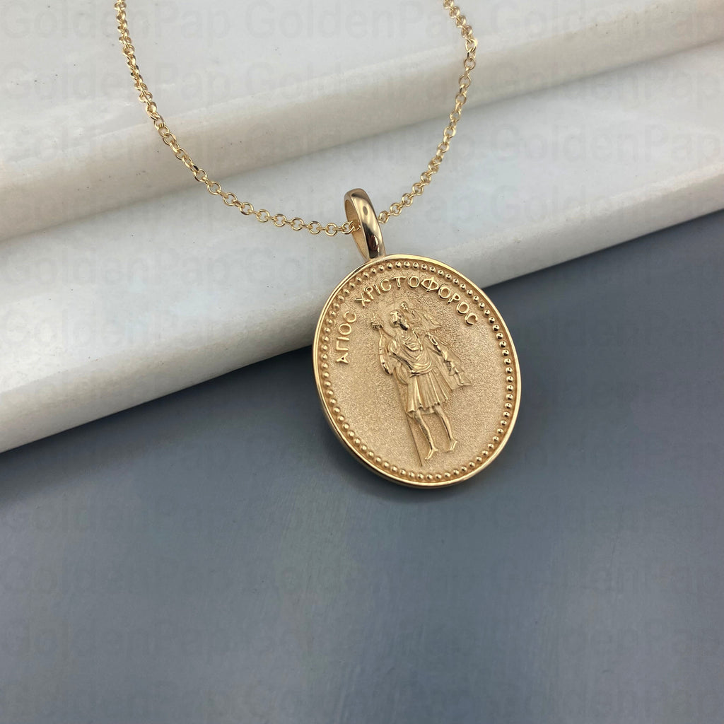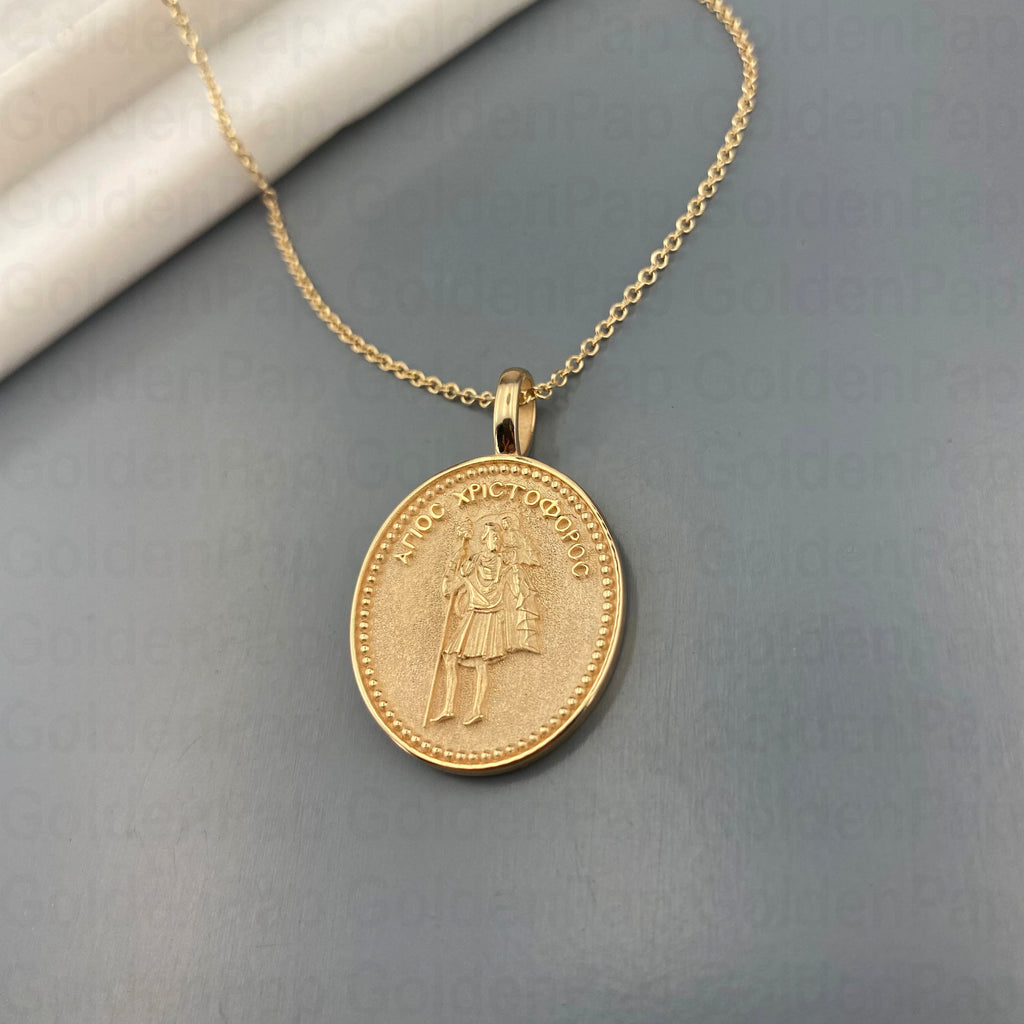14k solid gold double sided pendant with Saint Christopher (RP69)