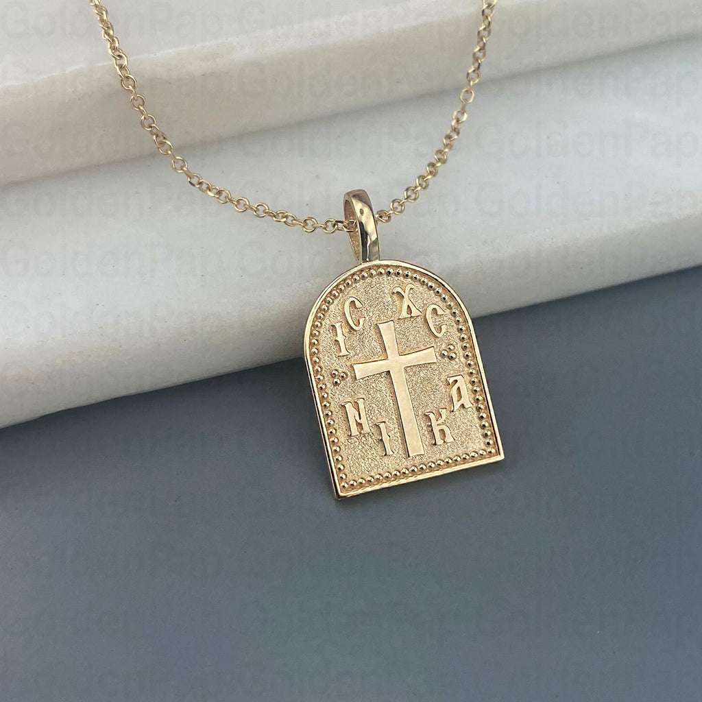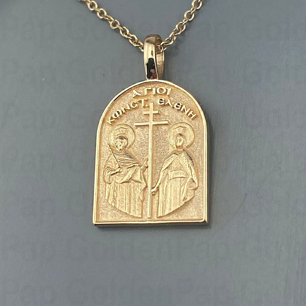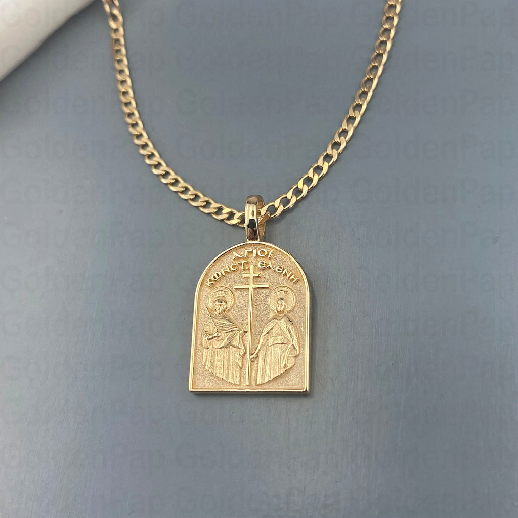 14k solid gold double sided Saint Constantine and Helen pendant (RP173)