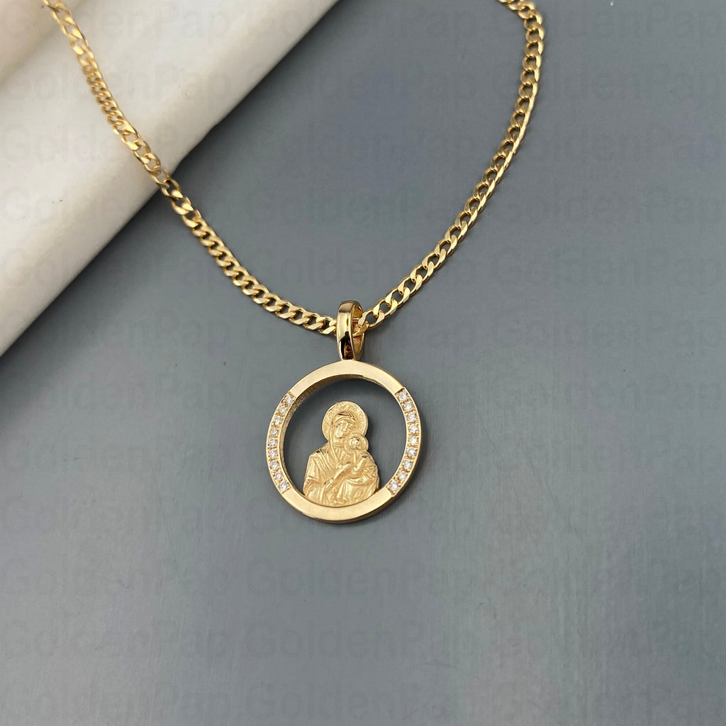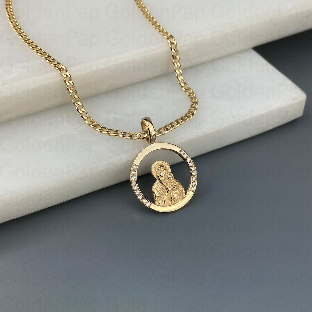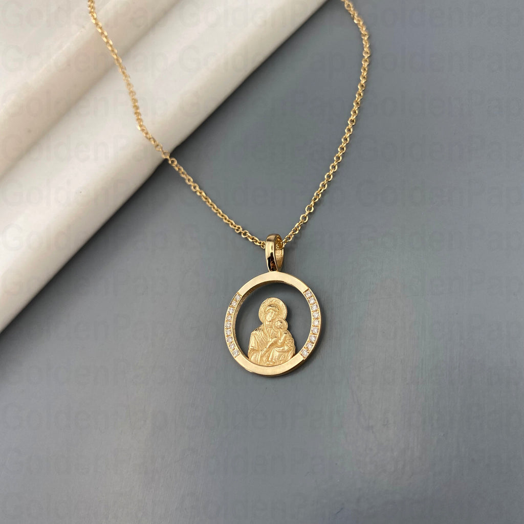 14k solid gold Virgin Mary pendant with Natural Diamonds (RP118)