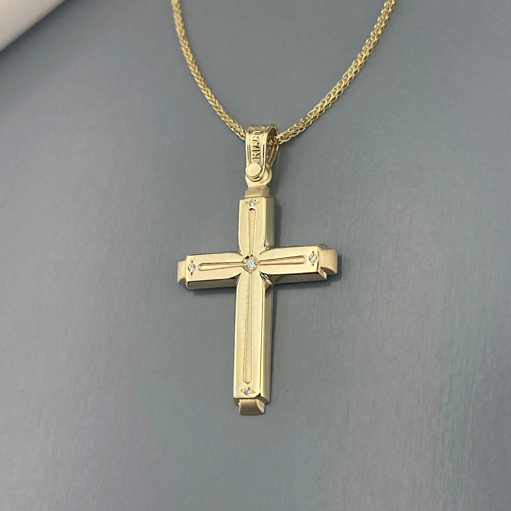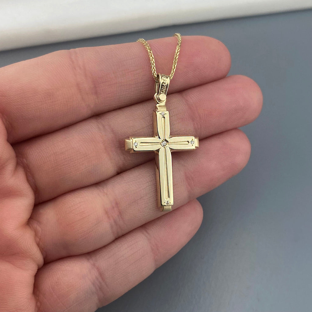 14k Gold cross with zirgons (SKU: 14KZ58)