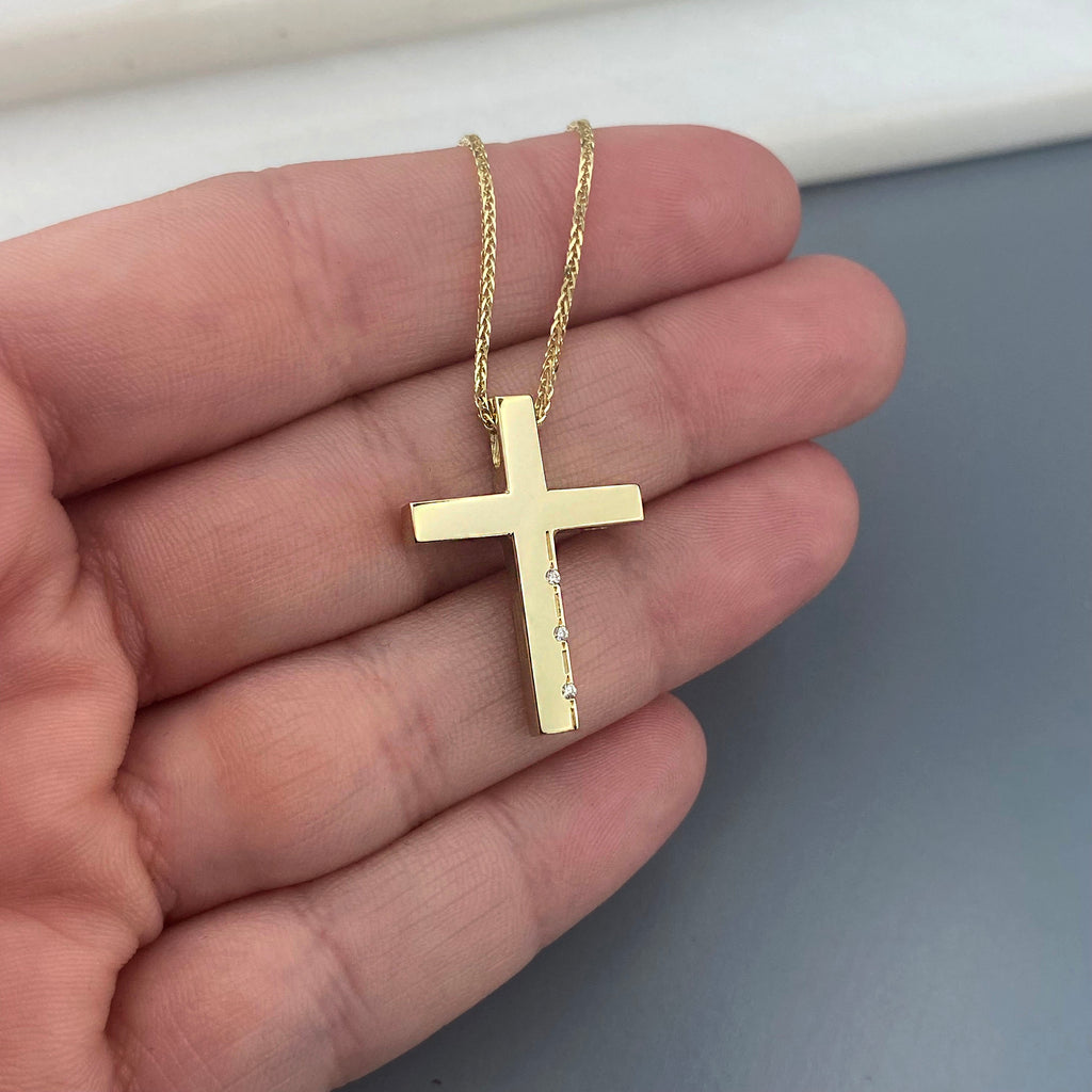14k Gold cross with zirgons (SKU: 14KZ59)