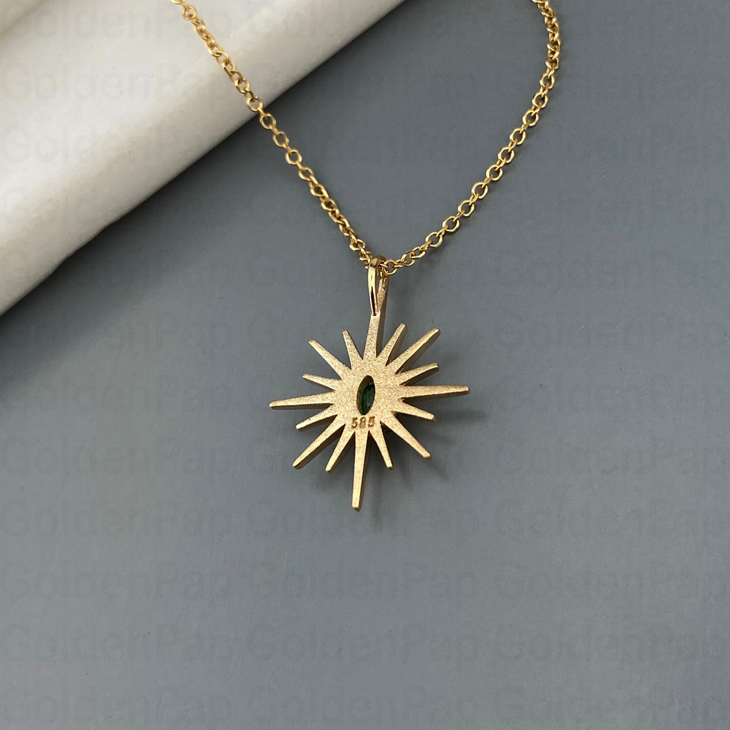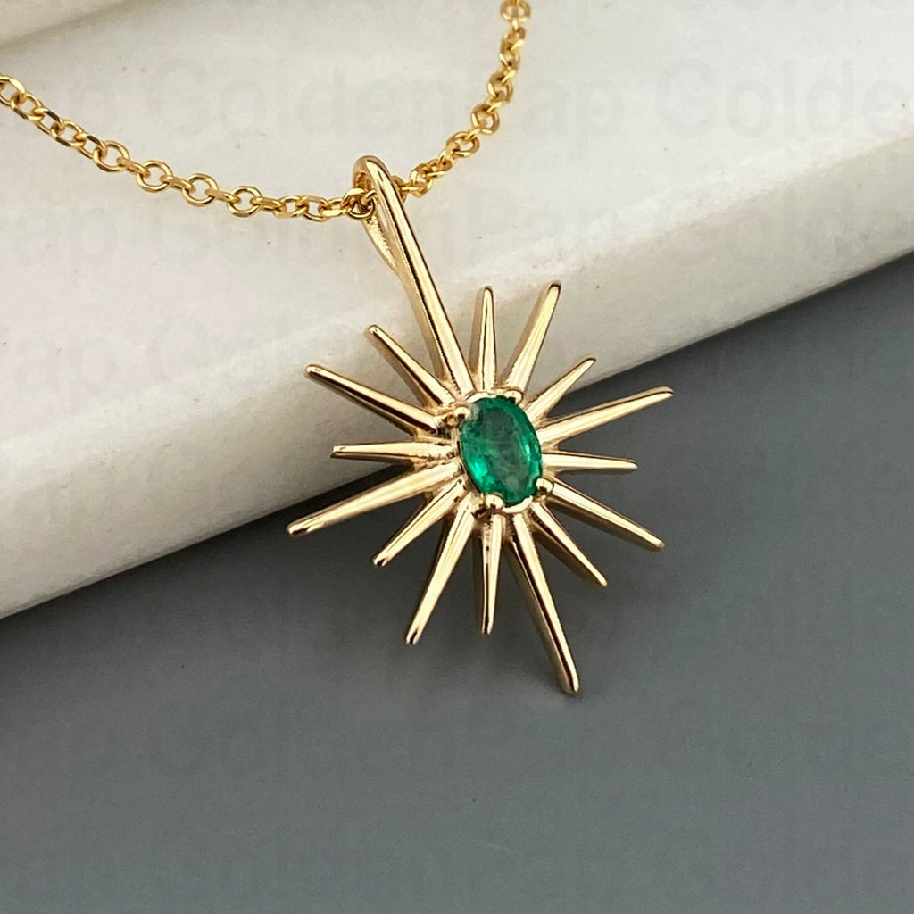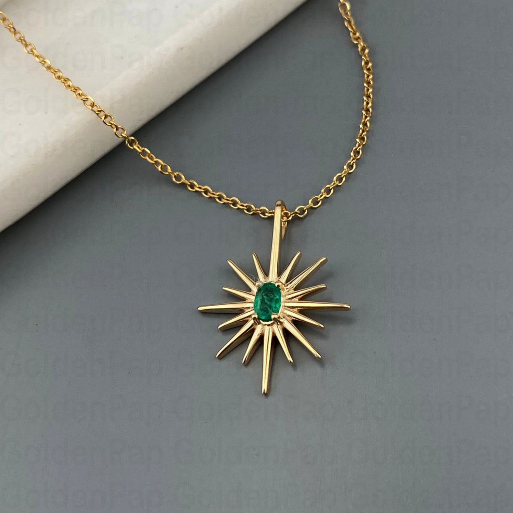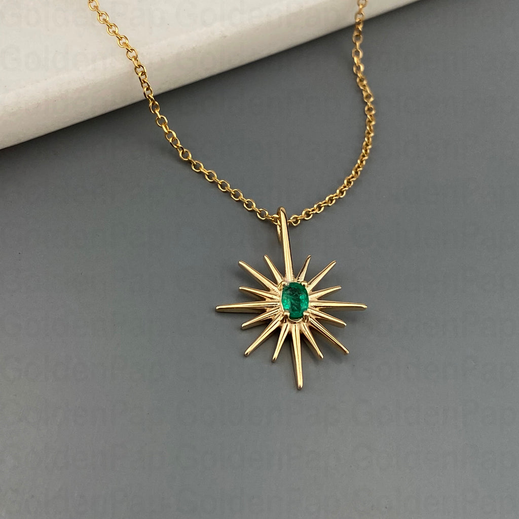 / 14k solid gold North Star pendant with Natural Emerald (RP160)