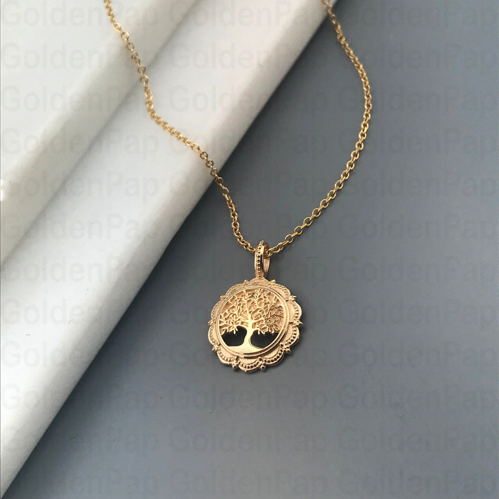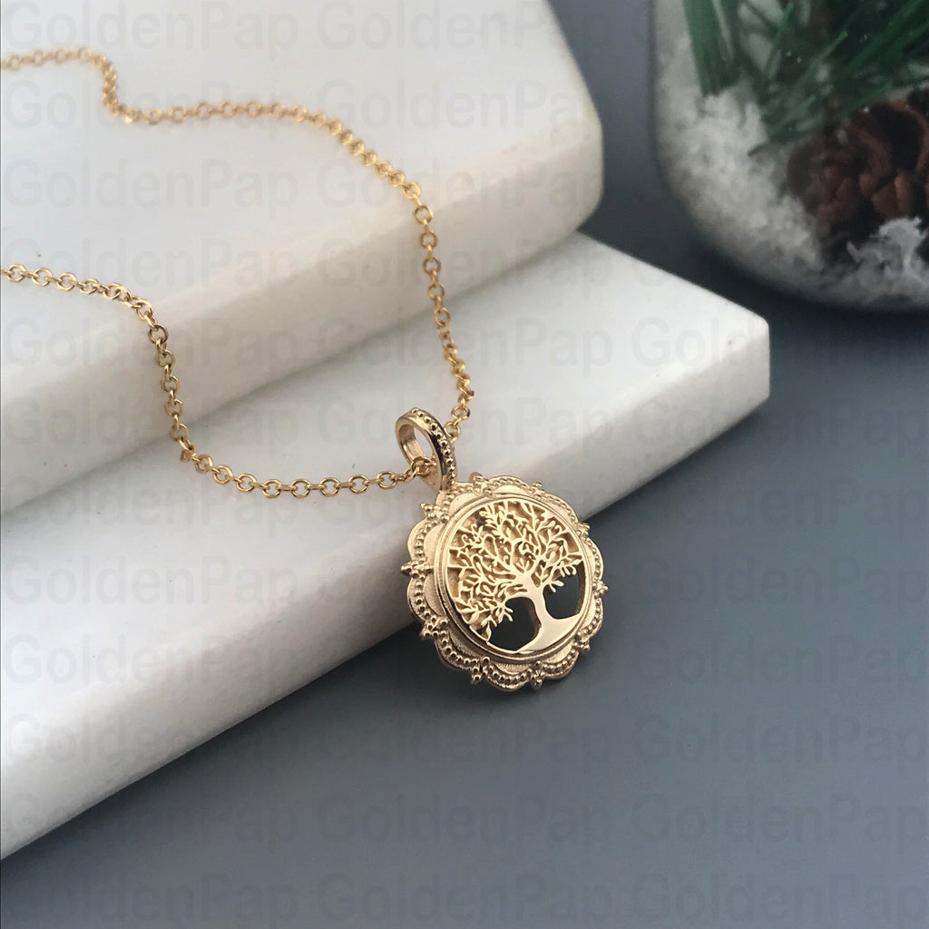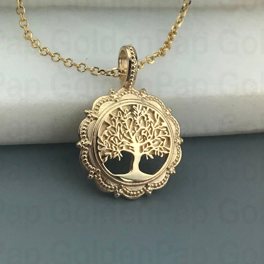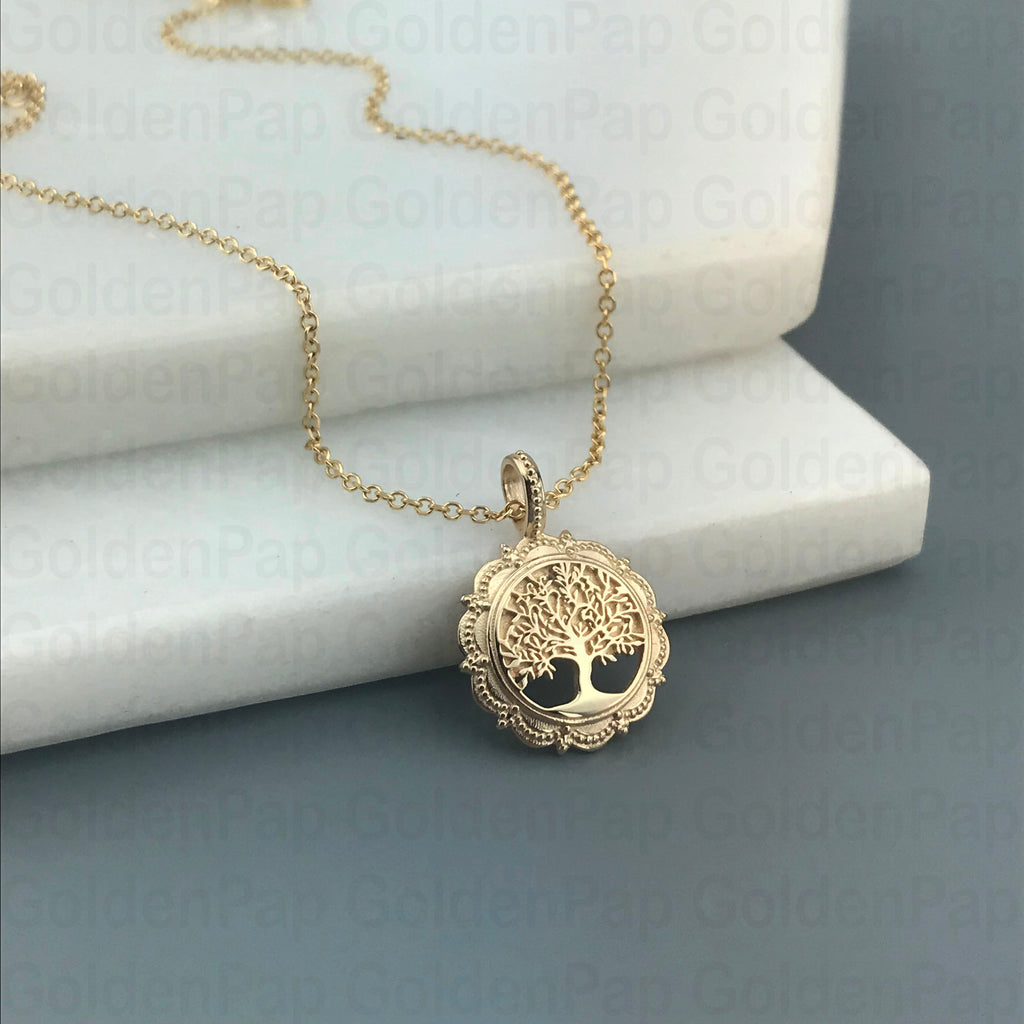 14k solid gold tree of life pendant (RP186)